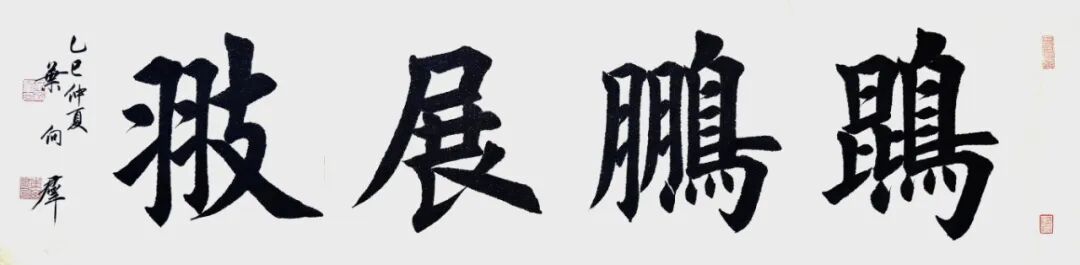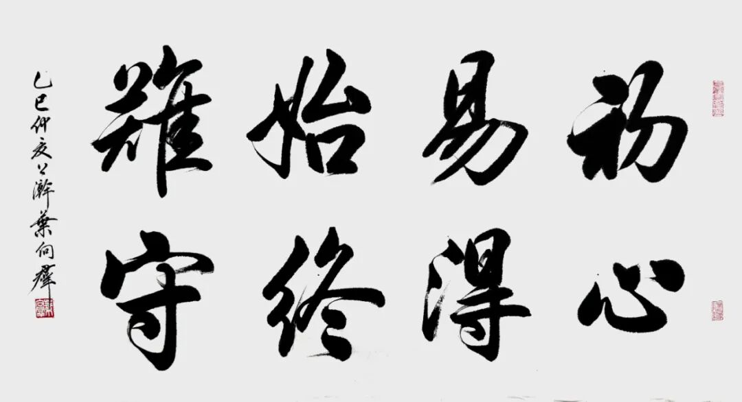 然而,叶向群先生的书法习成并非止于继承与仿效,在漫长的书法实践中,他结合自身学书阅历,深入探究并总结前人的书写与创作经验,渐次形成自身独特的书法书写与创作风格。此风格主要体现于运笔行墨的洒脱不羁与不拘一格。在叶向群先生笔下,无论是运笔的流畅自如,抑或行墨的浓淡干湿,皆极为自然而不失力度,既不囿于传统形式,亦不刻板生硬。字形结构方面呈现方正饱满的特质,血肉筋骨气完备无缺,形神兼备,字字充满生机。在空间美感的营造上,他的楷书作品更是天质自然,意若神作,绝无呆板的形态,展现出一种活泼灵动、气韵生动的艺术效果。