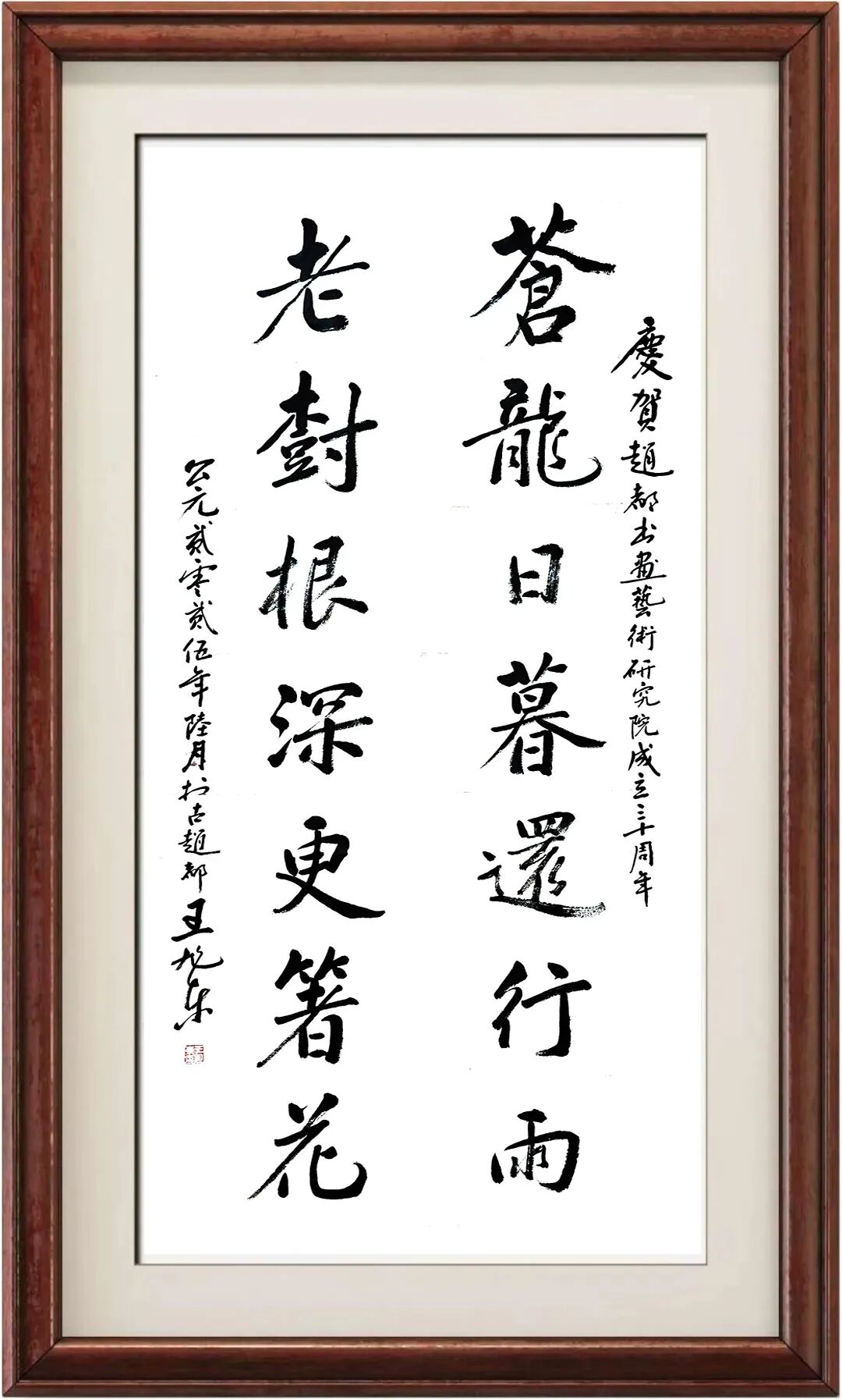 王旭东先生的起笔藏露变化,行笔厚实立体,收笔干净利落,其笔画质量、结构布局、风格特点、韵味意境以及创新与继承等方面都表现出色,表现出了他对书法的精湛技艺和独特的艺术追求。