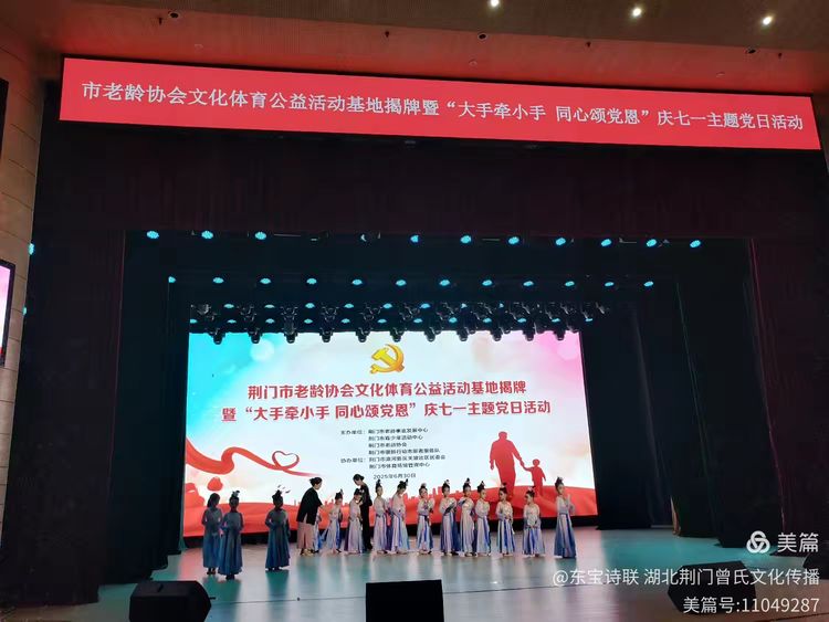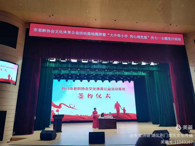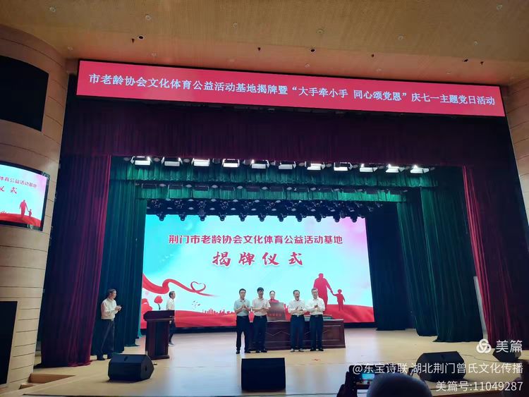 6月30日,荆门市老龄协会文化体育公益活动基地揭牌暨“大手牵小手 同心颂党恩”庆七一主题党日活动在荆门市青少年活动中心一楼演播大厅成功举办。此次活动由荆门市老龄事业发展中心、荆门市青少年活动中心、荆门市老龄协会、荆门市银龄行动志愿者服务队主办,荆门市漳河新区关坡社区居委会、荆门市体育场馆管理中心协办,众多领导嘉宾齐聚一堂,共同见证这一重要时刻。