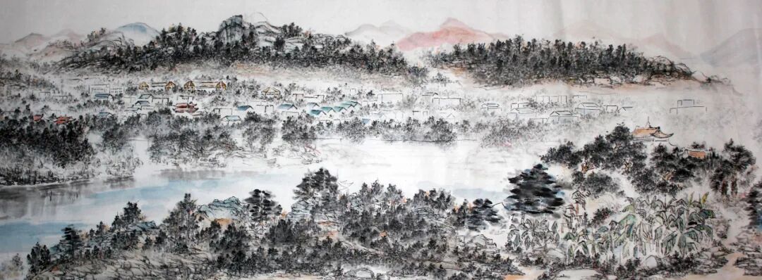 陈伍祥先生对潇湘地域的风景实在是太熟悉了。那氤氲的气象,浮动着湿润的水气,一片朦胧的雨后风采,早已是深深地镌刻在了他的心间。正因如此,他在创作时才会常以写意的手法,来自如地构绘心中景象,最终使画面完美呈现出一种“水光潋滟晴方好,山色空蒙雨亦奇”的诗情妙韵。其意境超尘脱俗,其情景钟灵毓秀,每一处都足以令人魂牵梦绕,观之仿佛亲临于其中,可以在江水亭岸品一盏清茗,烟光云影,涤荡心灵;耳畔又似有湘南小调的悦耳之音,自是空灵中不失人间烟火气,如此澹然天趣,只觉纸上生情! 前有淮海戴时乘,不远数千里担簦学画。今有永州陈伍祥,匪朝伊夕浸淫潇湘,静参妙理。可以说,陈伍祥先生的丹青成功,正是在于他有一颗避俗自乐的寂静心,或垂坐江边清风拂袖,或游步阁楼寄兴抒怀,每一幅画作,都绝不是臆想的空泛之作,而是取景于心,随后应之于手的意化结果。一系列《锦绣潇湘》,构图望远无痕,笔墨清淡秀逸,疏林密遮天光,螺髻近连汉影,又见巉岩峭壁奔竞而出,飞瀑鸣泉潺潺而下,渔船泛舟、阁楼亭宇,皆可使人凄然而动闾里之意,旷然有千里之思!所谓寂然不动,感而遂通,正当如是! 水墨澄怀醉潇湘,人间几度好风光。落落清姿,遥遥淡影,中国人作画,从来都是讲究于意境的感染,正是“重道而不重器”。而陈伍祥先生笔下的写意画,显然就是对此真诠最好的印证。在快节奏的市场经济环境下,人人心气浮躁,只为生活焦虑,又有多少人思游山水却不能及。而陈伍祥先生的画作,恰恰是回应了当代人对“采菊东篱下,悠然见南山”这种精神抚慰的深切渴求。毕竟唯有引人共鸣才能令人沉浸,也唯有共情自然才能蒙味自然,品高者,韵自胜焉!