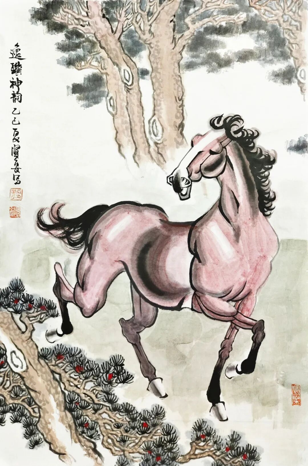 其腕底风云,既深植于笔墨丹青之沃壤,复能吐纳八面新潮,以铁笔生花,铸就时代气象。作品巍巍乎如青铜之鼎,镌刻民族精魂;浩浩乎若江海奔涌,激荡时代气韵。此非仅为技艺之精绝,更在于以丹青为舟楫,传薪火于未央,使古老智慧焕然新生,令华夏气度磅礴寰宇。