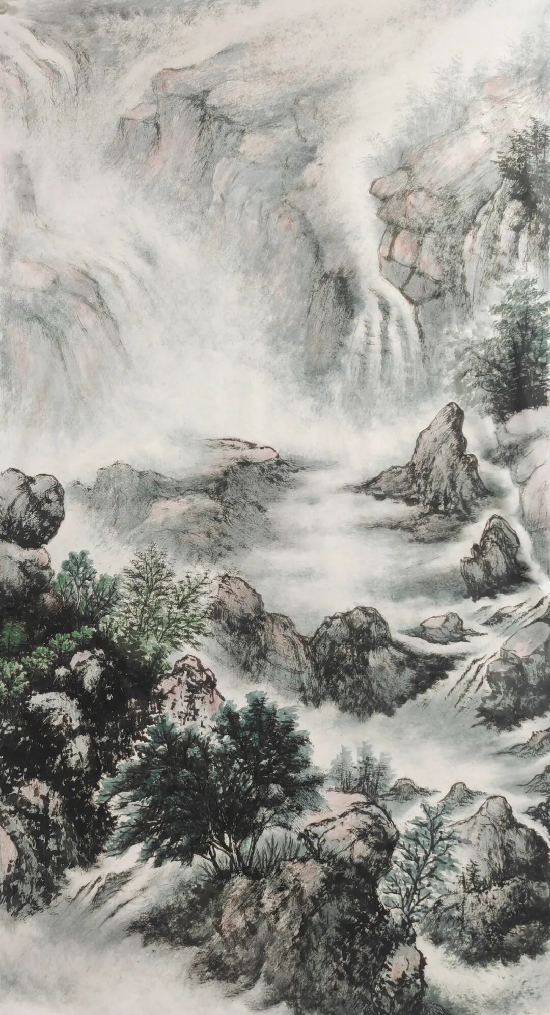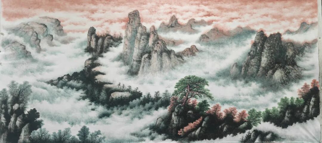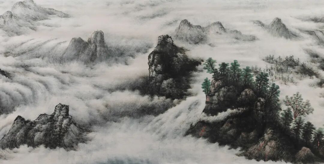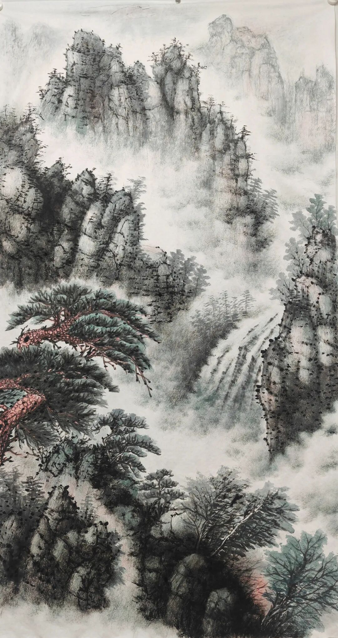 其腕底风云,既深植于笔墨丹青之沃壤,复能吐纳八面新潮,以铁笔生花,铸就时代气象。作品巍巍乎如青铜之鼎,镌刻民族精魂;浩浩乎若江海奔涌,激荡时代气韵。此非仅为技艺之精绝,更在于以丹青为舟楫,传薪火于未央,使古老智慧焕然新生,令华夏气度磅礴寰宇。