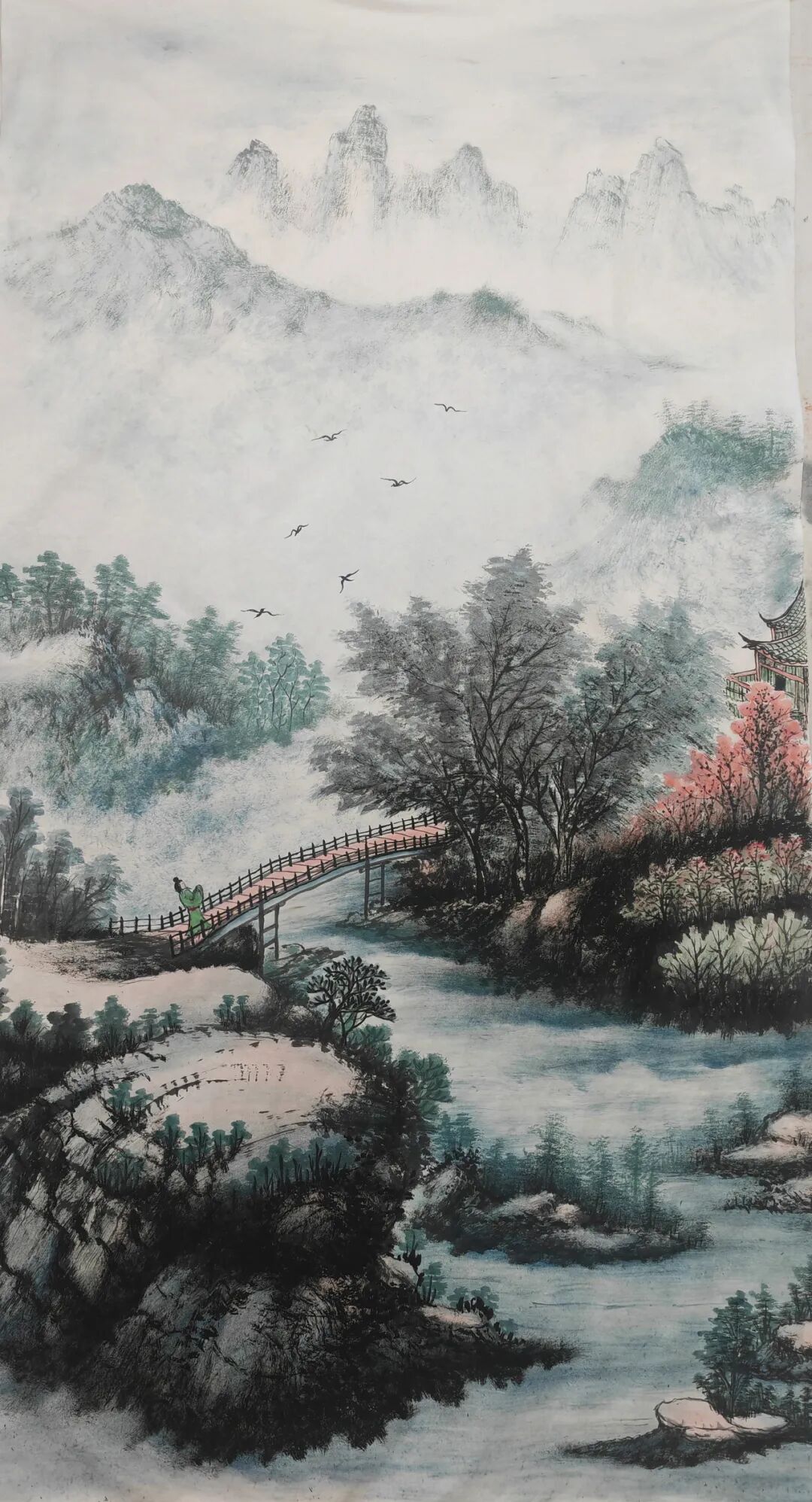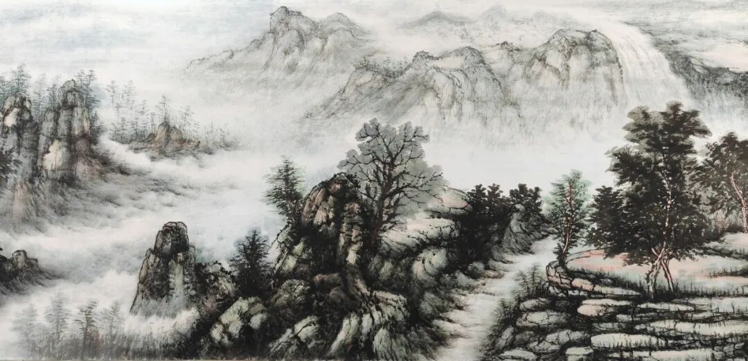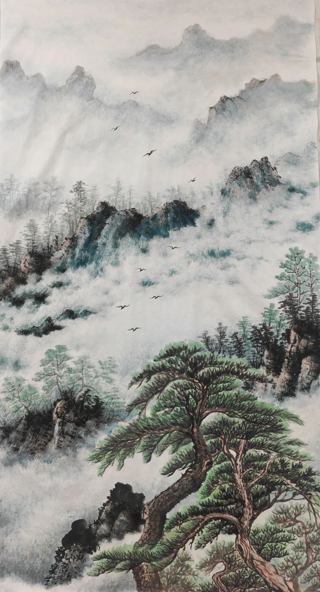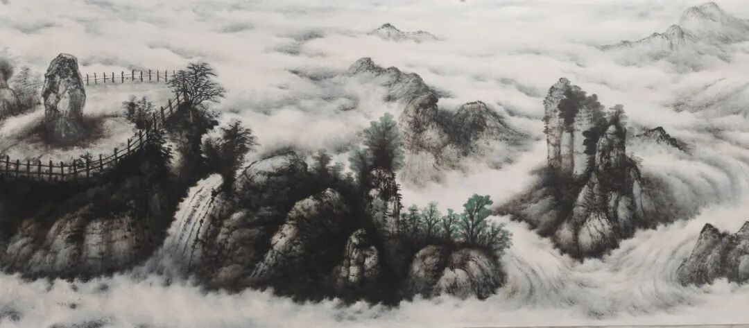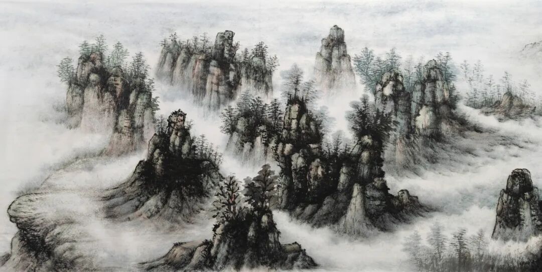其腕底风云,既深植于笔墨丹青之沃壤,复能吐纳八面新潮,以铁笔生花,铸就时代气象。作品巍巍乎如青铜之鼎,镌刻民族精魂;浩浩乎若江海奔涌,激荡时代气韵。此非仅为技艺之精绝,更在于以丹青为舟楫,传薪火于未央,使古老智慧焕然新生,令华夏气度磅礴寰宇。