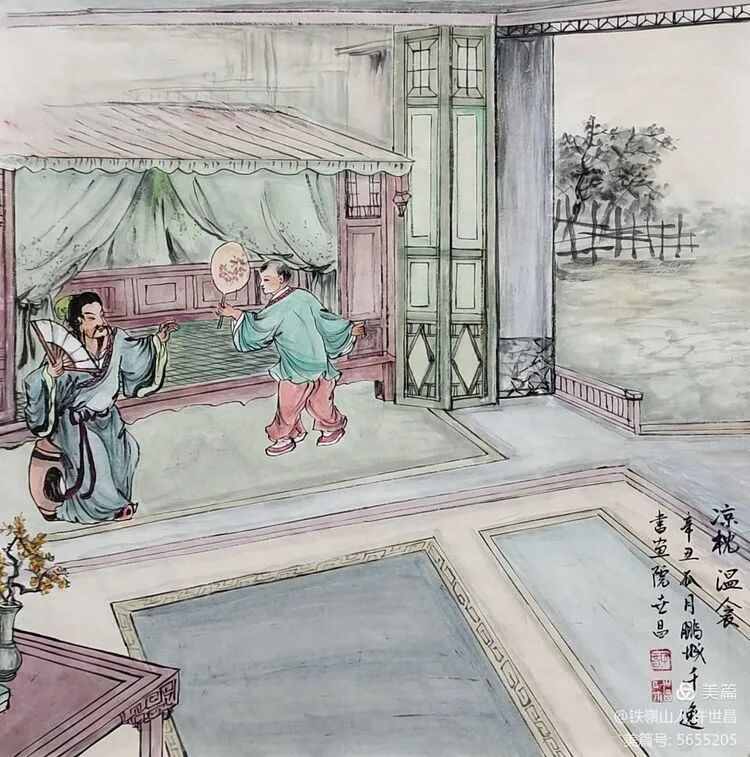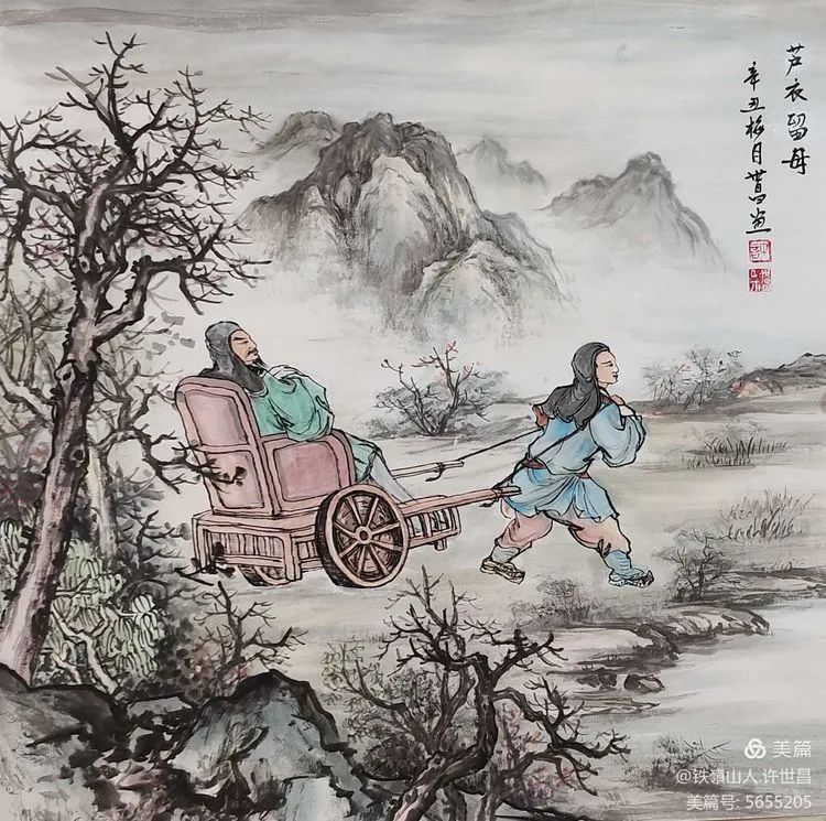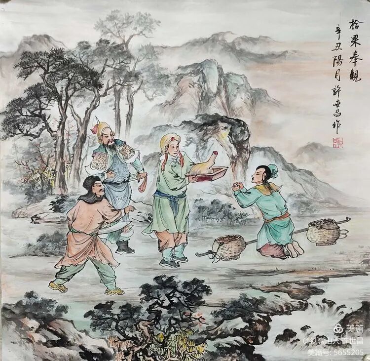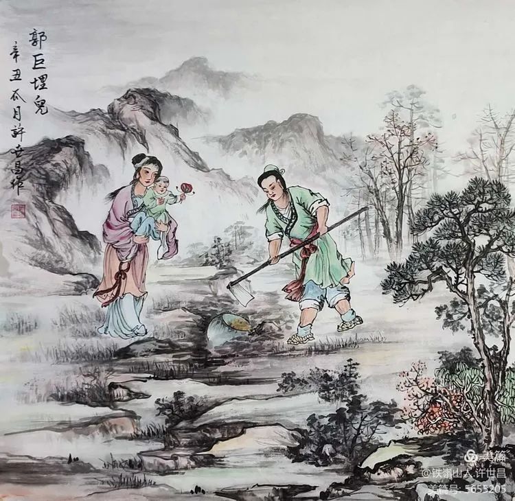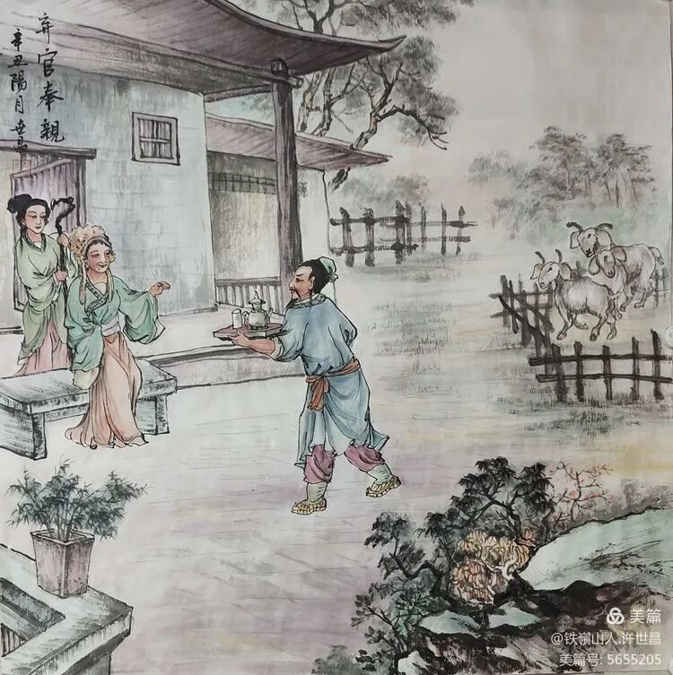 孝,是中华民族的传统美德,百善孝为先,孝敬父母,终养天年是每个子女的职责和义务,是维持每个家庭和睦发展的基础和道德准则。元代作家郭巨敬搜集整理元代以前的24个孝子故事,编成《二十四孝》,有的还配图。根据古文内容赏析,许世昌于2022年终于完成《二十四孝图》的创作,内容详述和题诗,完成了他的心愿。