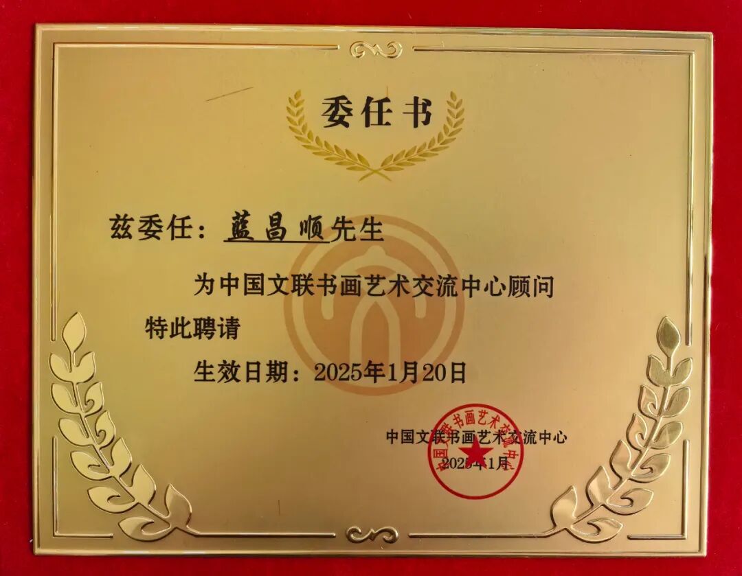2019年5月蓝昌顺书法作品被中华人民共和国外交部收藏;