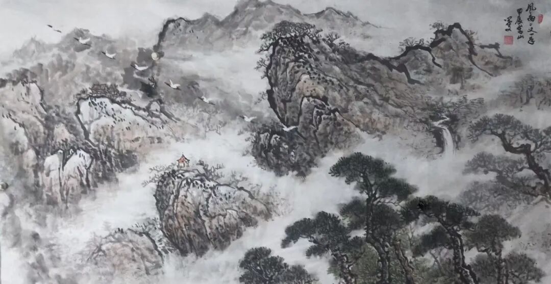 其腕底风云,既深植于笔墨丹青之沃壤,复能吐纳八面新潮,以铁笔生花,铸就时代气象。作品巍巍乎如青铜之鼎,镌刻民族精魂;浩浩乎若江海奔涌,激荡时代气韵。此非仅为技艺之精绝,更在于以丹青为舟楫,传薪火于未央,使古老智慧焕然新生,令华夏气度磅礴寰宇。