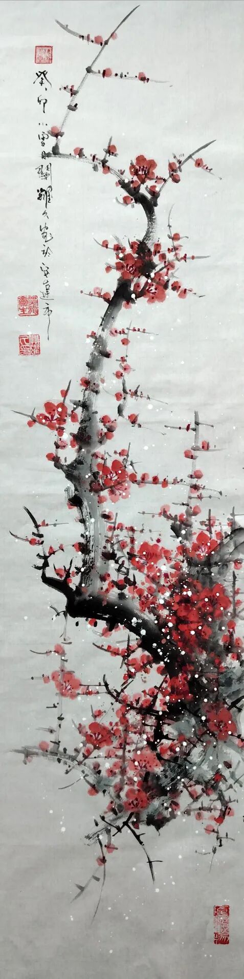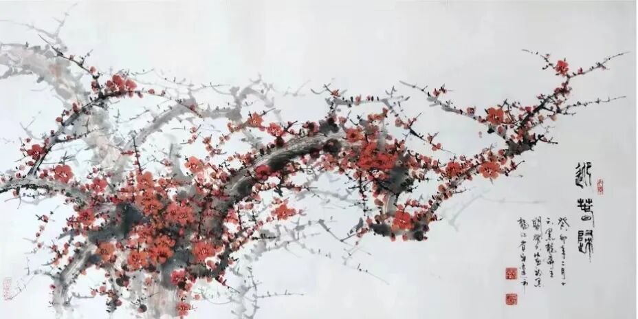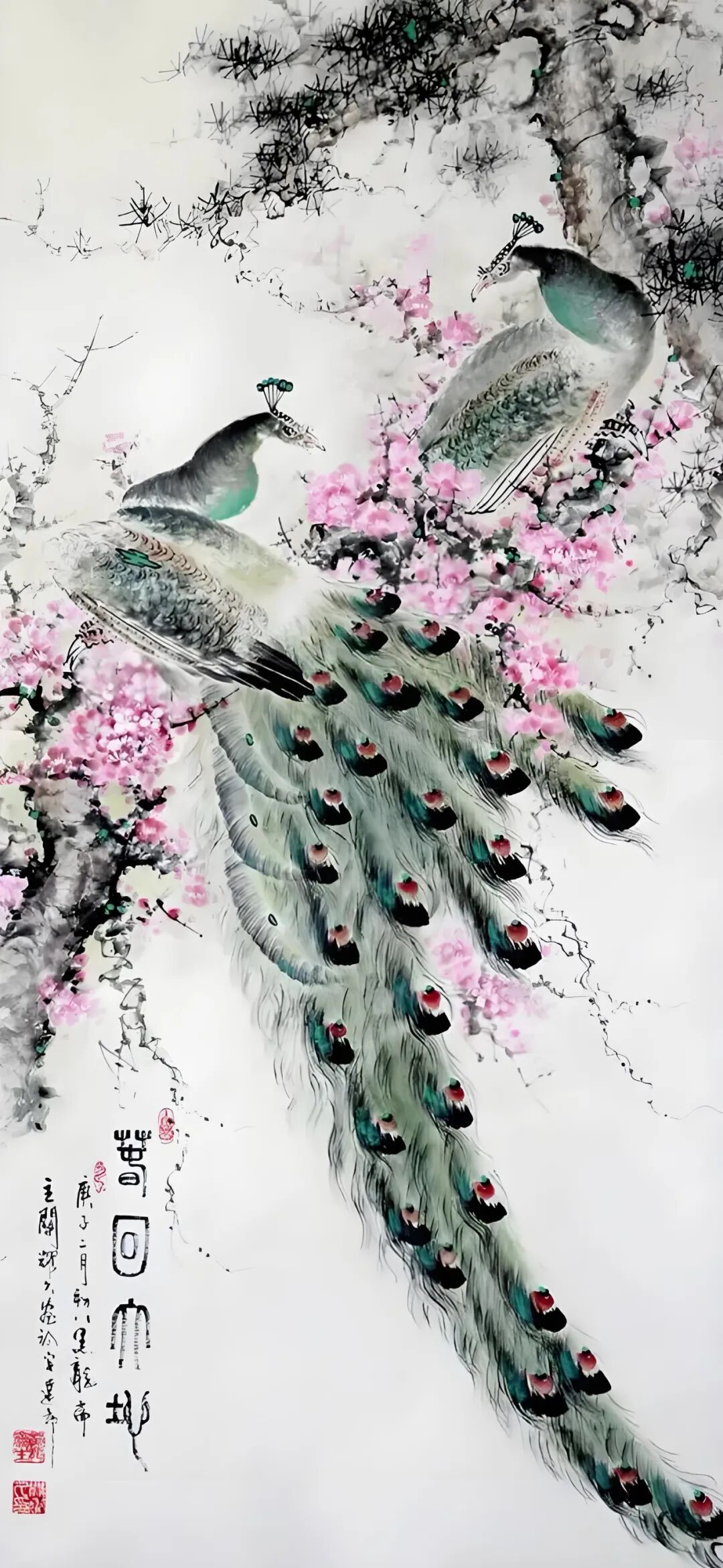 没骨龙画以白为“点”,黑为“面”,这是它与世界任何画种的本质区别。它充分的体现了中国画的反差之美和空灵之美。它的诞生,吸取了众多姐妹艺术的精华(如,牛皮影的透笼雕刻,云南腊染的空白,治印的阴刻,道家阴阳鱼的黑白反差,浮雕的效果,还有西方明暗五调子的手法)。龙的造型借用了战国和五代龙纹的抽象。没骨龙画,是世界艺术之大成的产物!并有关耀久《画龙随笔》美学理论问世。孔雀画以“三美”而名世。有工笔之“繁”,又有写意之“简”,而取其“中”。梅有龙形,龙势,区别与历代之梅。龙翔凤翥,梅骨张扬。他把中华的图腾之美,推向了新的高度。路漫漫,他在求索……!