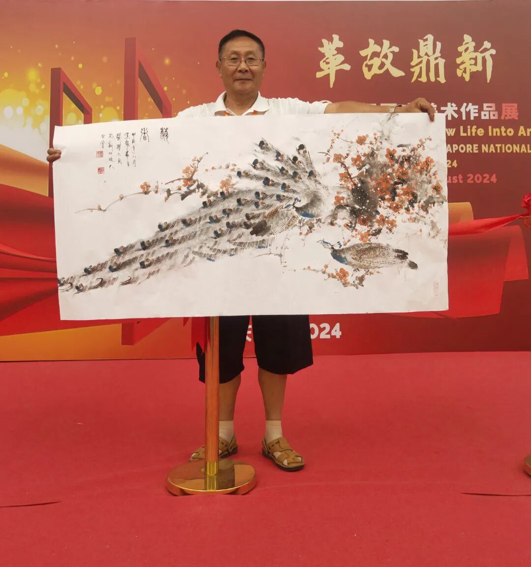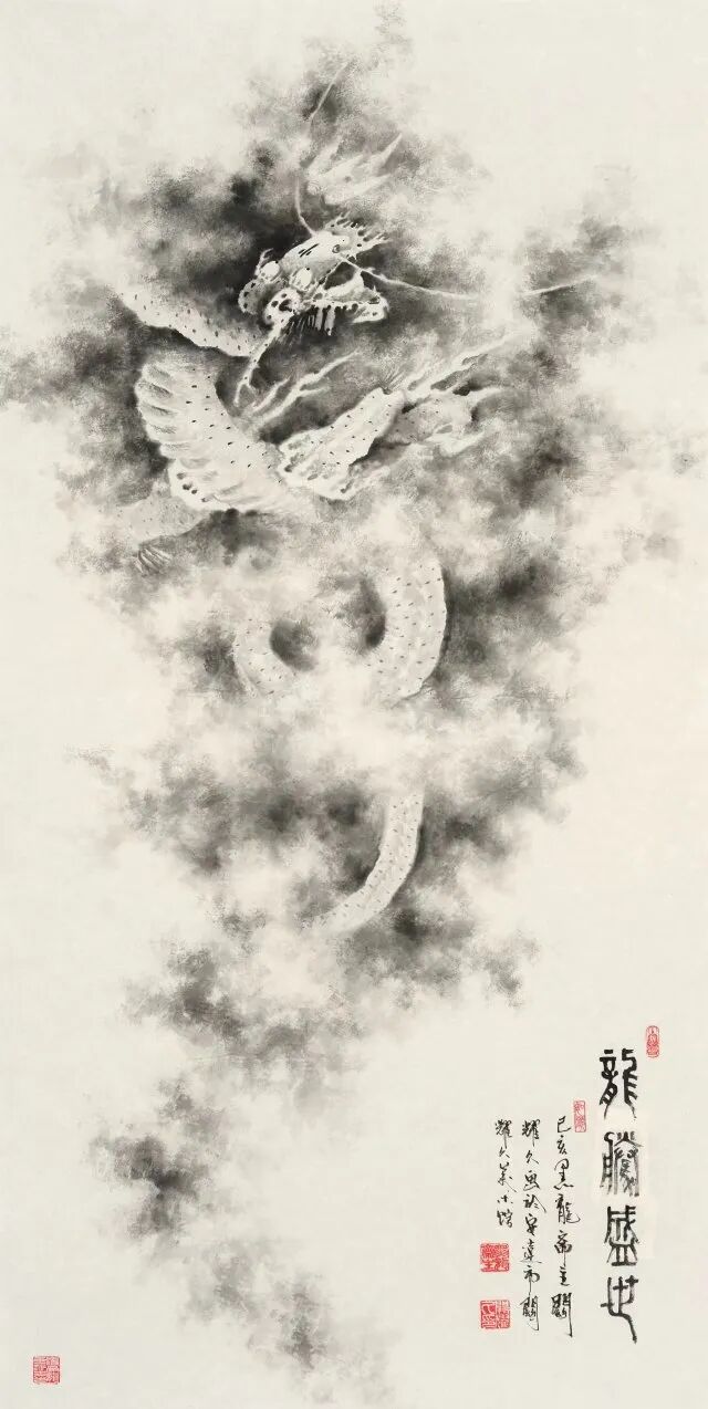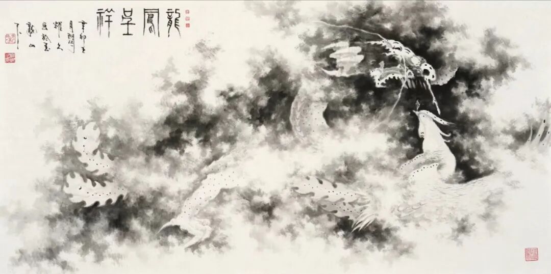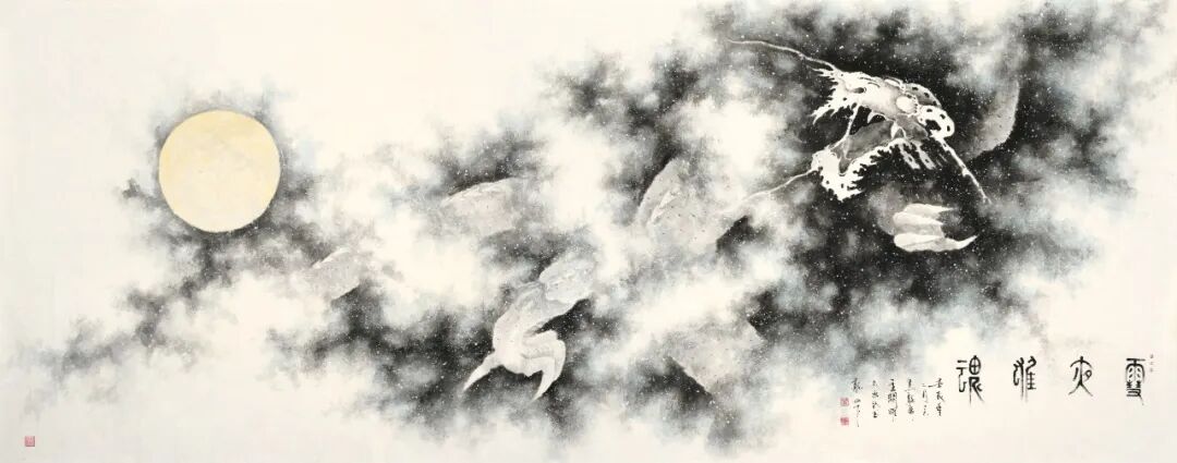 其腕底风云,既深植于笔墨丹青之沃壤,复能吐纳八面新潮,以铁笔生花,铸就时代气象。作品巍巍乎如青铜之鼎,镌刻民族精魂;浩浩乎若江海奔涌,激荡时代气韵。此非仅为技艺之精绝,更在于以丹青为舟楫,传薪火于未央,使古老智慧焕然新生,令华夏气度磅礴寰宇。