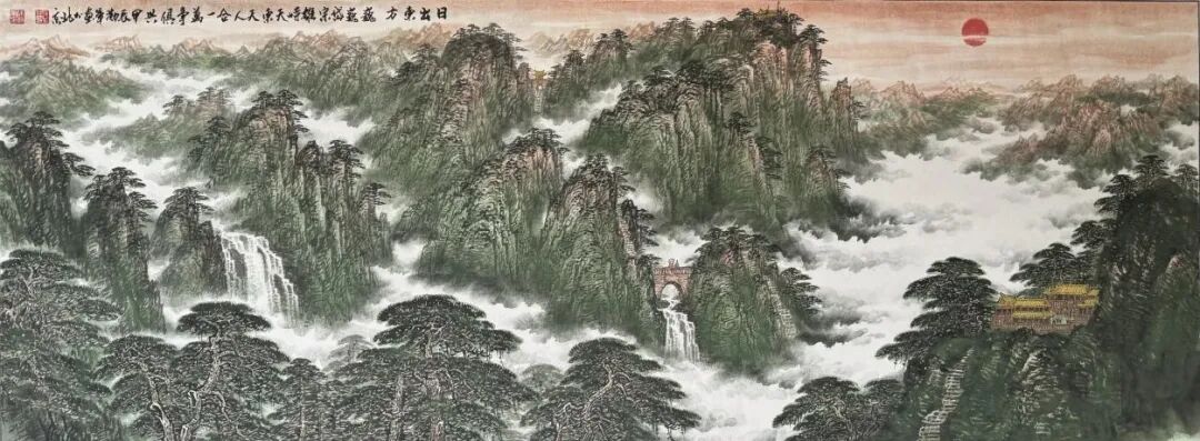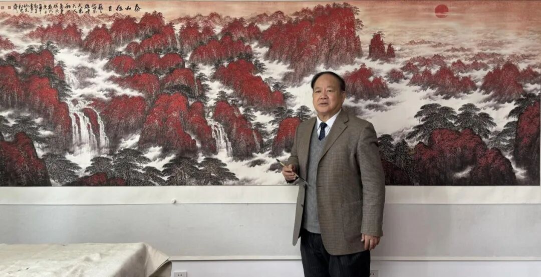 徐勤军大师在创作巨幅山水画《日出东方》