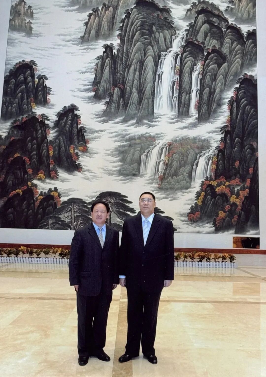 徐勤军大师在巨幅《山河颂》隆重揭幕仪式上与澳门特首崔世安合影