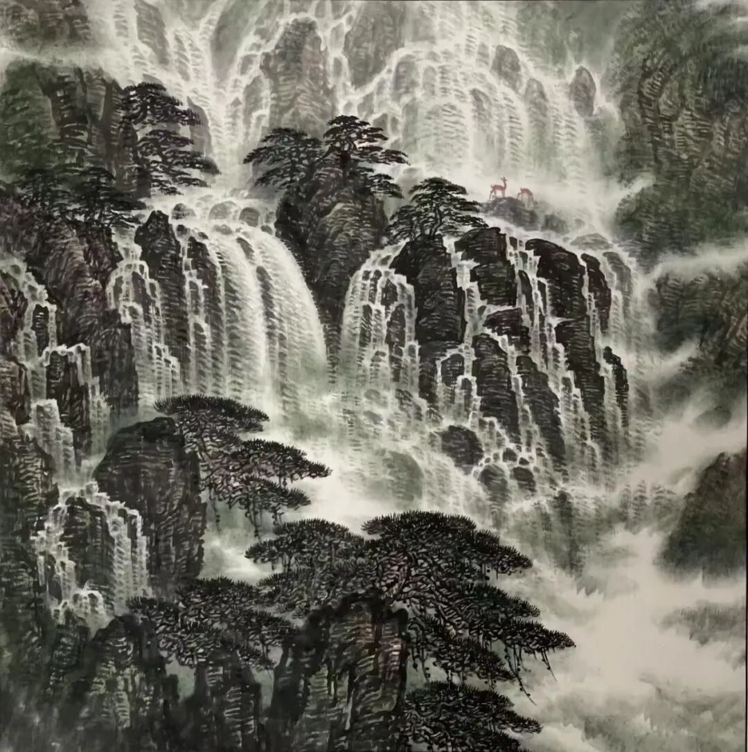 飞瀑如雷震山壑 96X96 cm