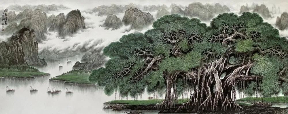 榕荫清夏 246x136cm