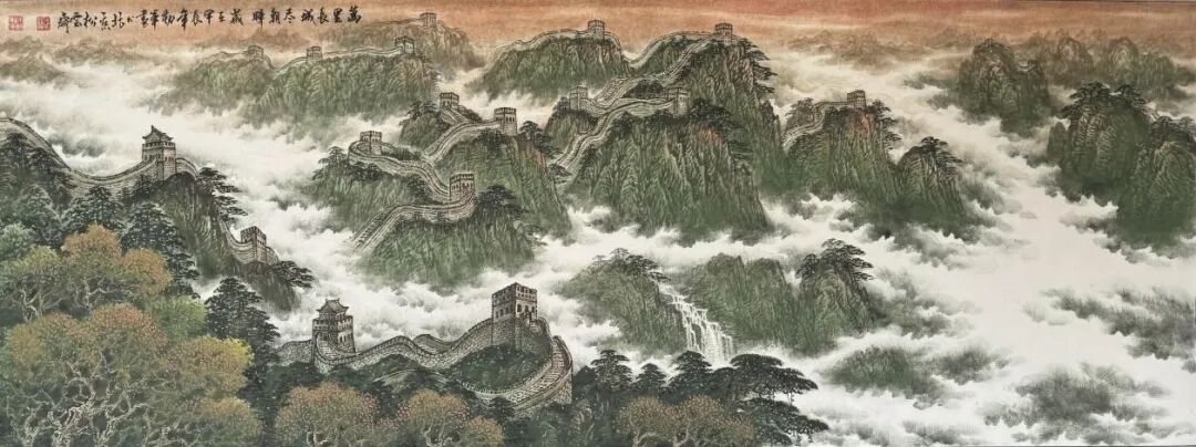 万里长城尽朝晖 360X143cm