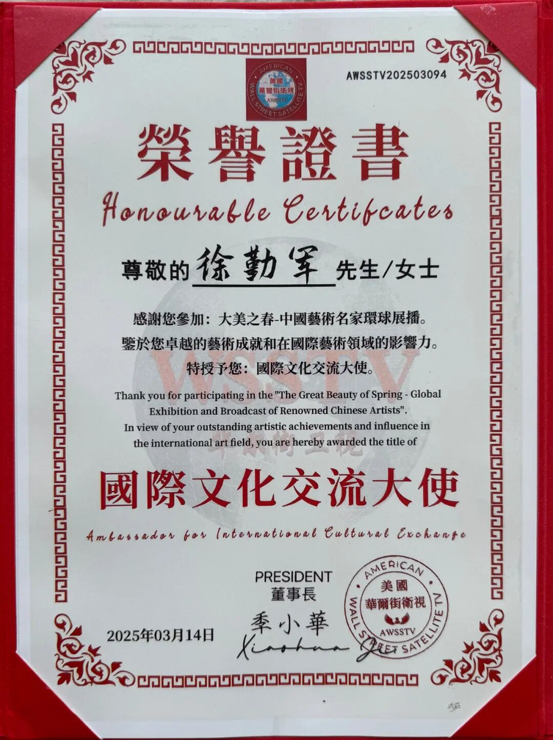 徐勤军大师应邀为世界多所名牌大学讲学授课、传播中华文化艺术。