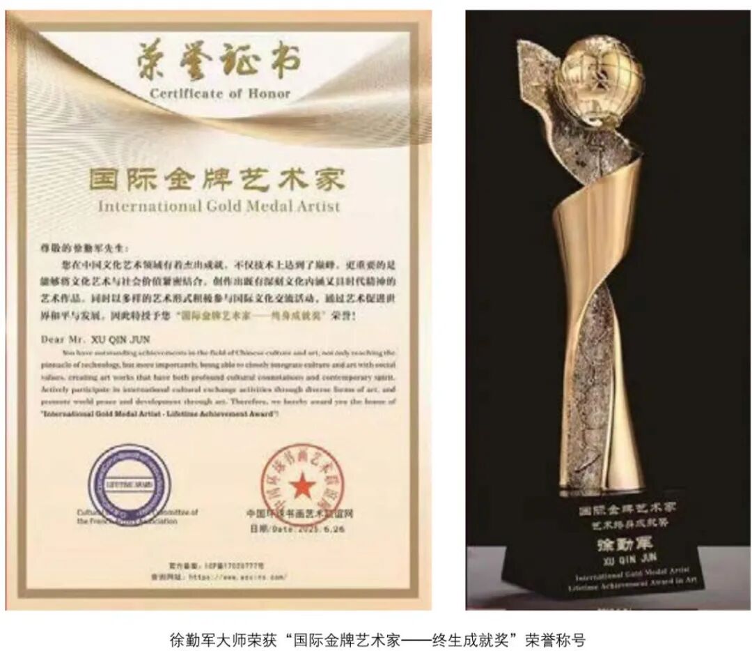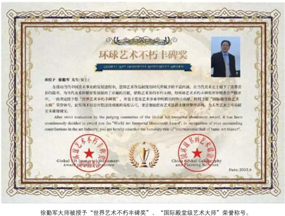 站在两个一百年奋斗目标的历史交汇点上回望,徐勤军大师的艺术人生恰如一幅徐徐展开的壮丽画卷。从山东艺术学院到中央美院,从国内讲坛到国际舞台,他始终以"笔墨当随时代"为创作信条,将个人艺术追求融入民族复兴的伟大征程。那些悬挂在国家殿堂的鸿篇巨制,那些载入世界艺术史册的经典之作,那些培育后学的谆谆教诲,共同构成了这位艺术大师的多维形象。在文化自信成为时代强音的今天,徐勤军大师以其卓越的艺术实践告诉我们:真正的传统不是静止的标本,而是流动的江河;真正的创新不是无根的浮萍,而是深厚的积淀。他的艺术人生,正是一条通往文化复兴的康庄大道,在这条道路上,我们看到了中华民族文化创造力生生不息的强大生命力。