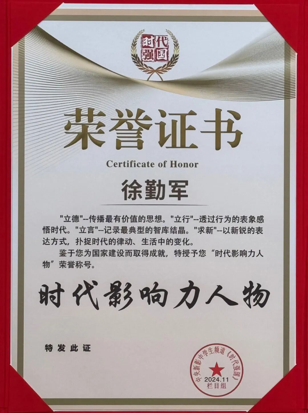 著名艺术大师徐勤军讲话并致答谢词