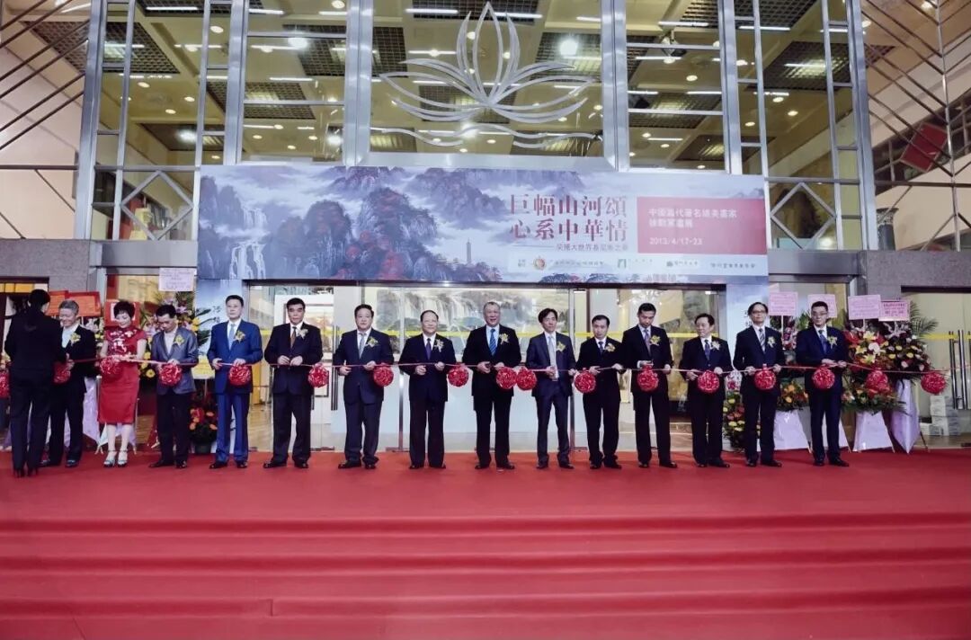 中央人民政府驻澳门联络办及澳门特区政府重要官参加《巨幅山河颂心系中华》徐勤军大师大型画展,隆重剪彩仪式。