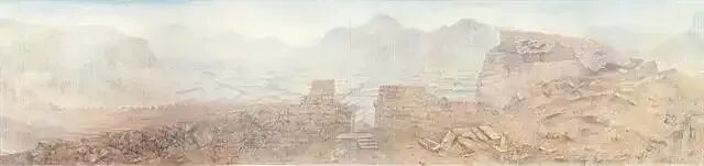 仰观这些作品,自然时光打马而过的感叹油然而生,国家继往开来的历史厚重感沉淀在心田,让他的画充满的感知深遂自然瞑想伟大历史的引涉力量,好象可以让人们的思绪经历一场穿越式的浩荡旅行