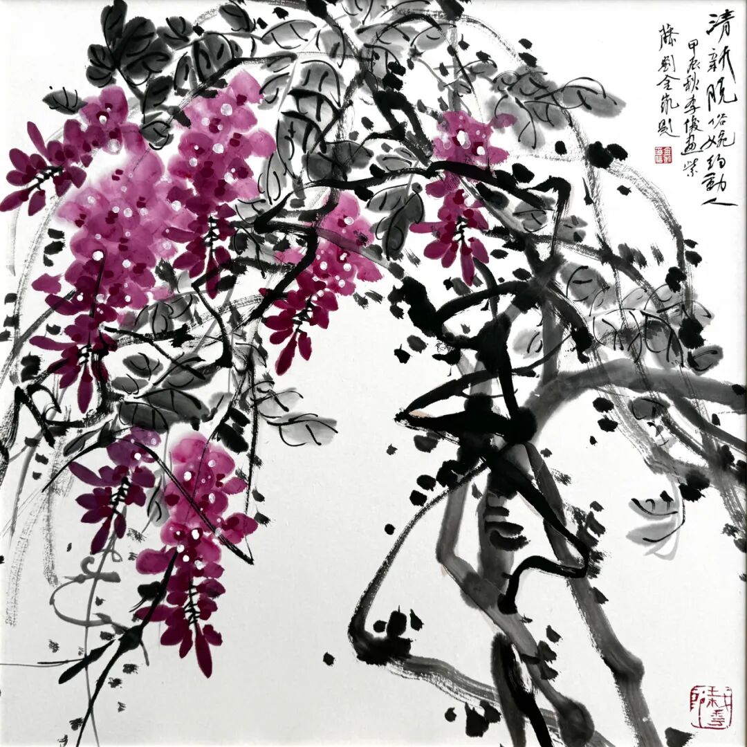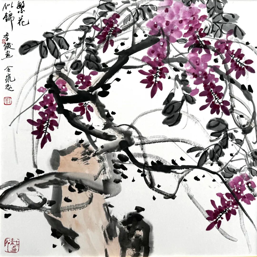 在流量至上的当下,李俊的艺术探索如一股清流——他不追热点,不逐虚名,只在笔墨与文化传播的交汇处深耕。其笔下反复出现的紫藤,既是对吴昌硕"气厚则苍,神和乃润"的致敬,更是对泰州学派"百姓日用即道"的呼应:中国艺术从不是少数人的专利,寻常花木里藏着文化密码,市井烟火中见得精神内核。