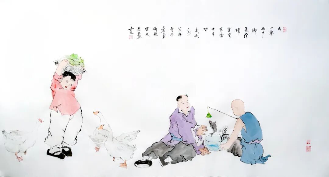 其腕底风云,既深植于笔墨丹青之沃壤,复能吐纳八面新潮,以铁笔生花,铸就时代气象。作品巍巍乎如青铜之鼎,镌刻民族精魂;浩浩乎若江海奔涌,激荡时代气韵。此非仅为技艺之精绝,更在于以丹青为舟楫,传薪火于未央,使古老智慧焕然新生,令华夏气度磅礴寰宇。