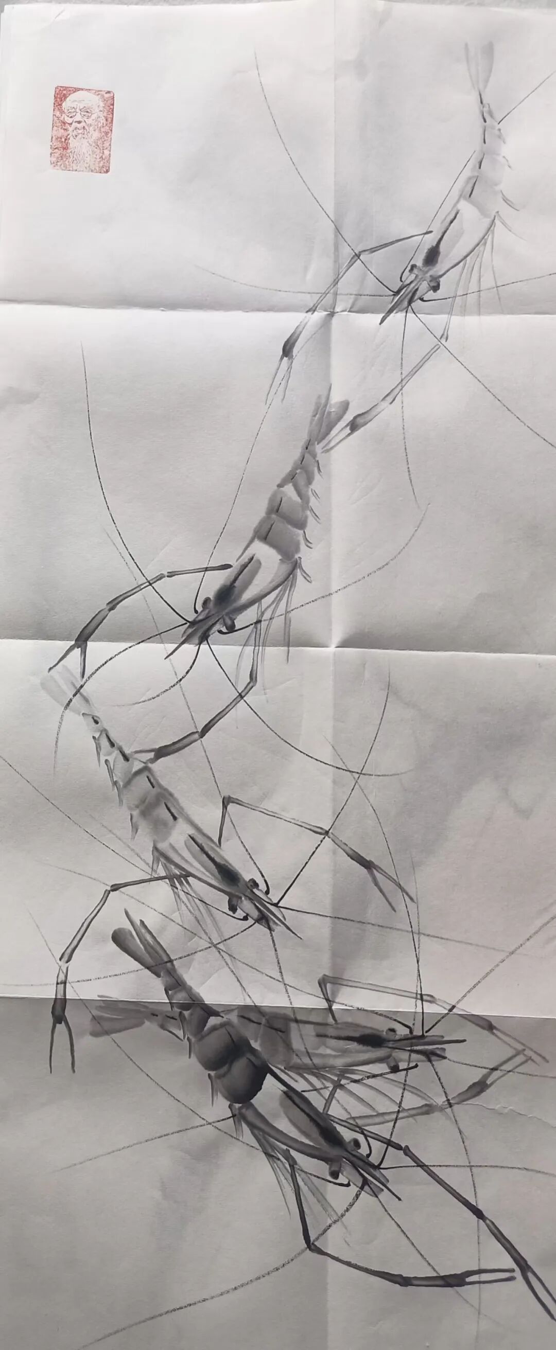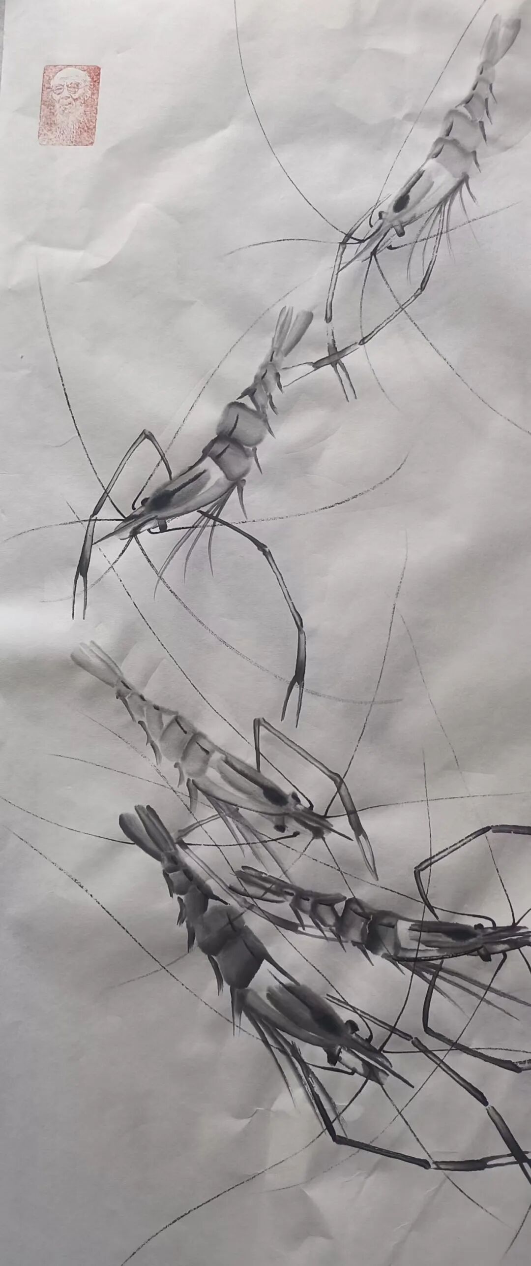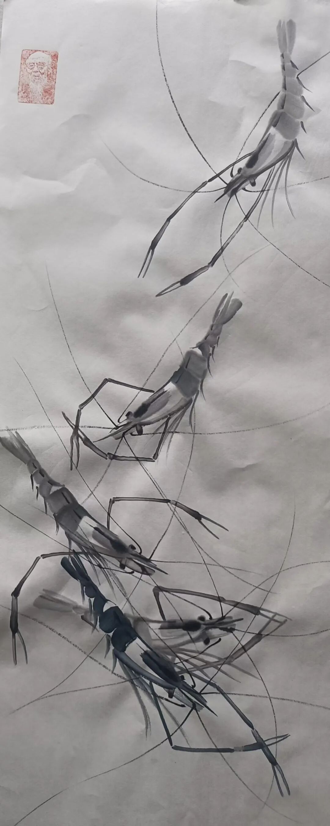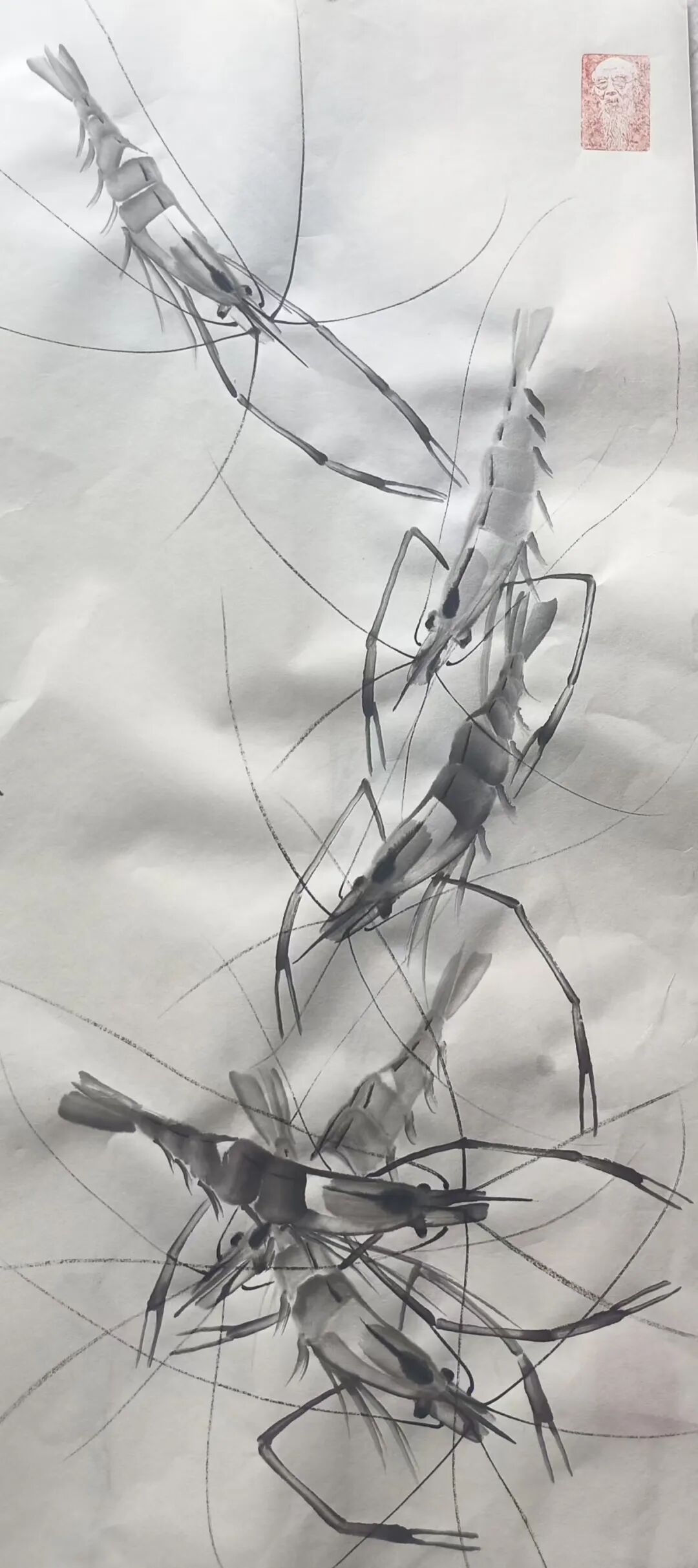 她的作品既承继齐派“妙在似与不似之间”的理念,又融入女性视角的细腻。笔下的花鸟虫鱼,既有白石老人的质朴灵动,又添几分现代审美中的雅致柔和。无论是栩栩如生的游虾,还是憨态可掬的雏鸡,都在她的笔墨下透着自然生机与生活情趣。