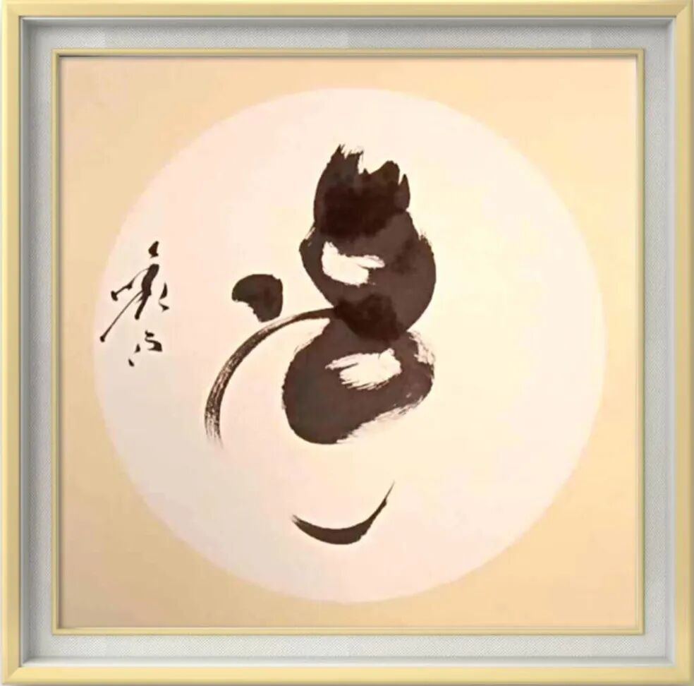 这方独特的“百岁猴寿”,出自意象书法创始人张松之手。作为中国首创意象书法中“猴寿”题材的开拓者,张松将书法艺术与生命寓意熔铸一炉:他在练习太极与修道时,从道家“昔日猴寿八百岁”的典故中汲取灵感,把“百”字与“寿”字叠加,用刚柔相济的笔触勾勒出形似猿猴的相形字,字间藏着太极图案,恰似将“长寿”“圆满”的祈愿刻进了笔墨肌理。