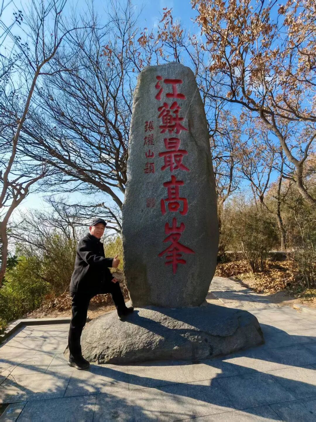 当最后一段石阶被踩在脚下,视野豁然开朗。玉女峰的标志性石碑立在平台中央,正面“江苏第一峰”五个鲜红大字在阳光下耀眼,不少人举着手机与它合影,镜头里还能框进远处黄海的粼粼波光。