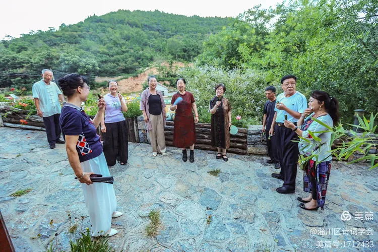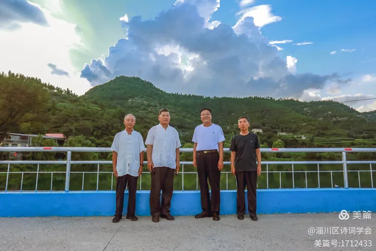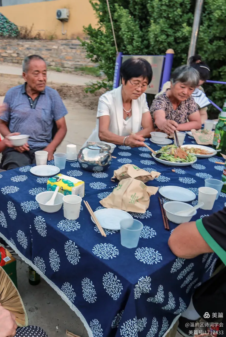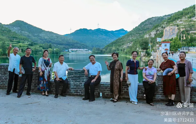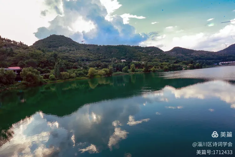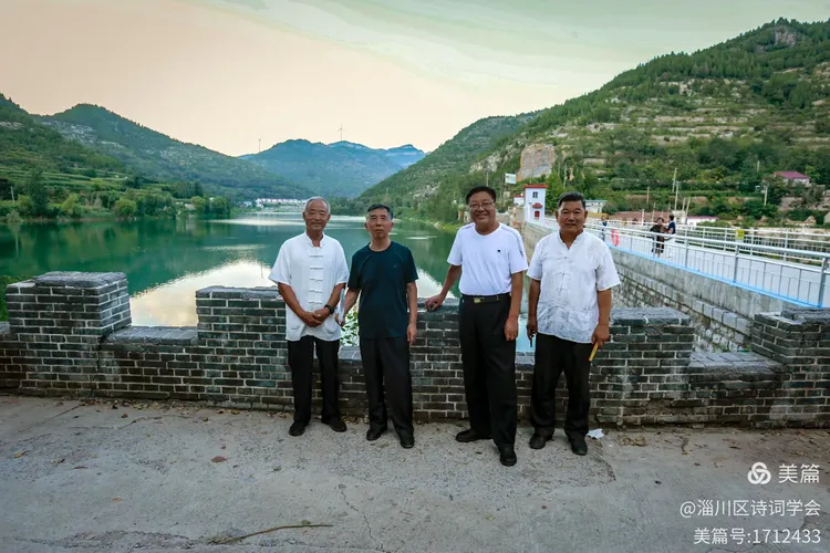 2025年8月2日,正值大暑时节,日暮时分,淄川区诗词学会般阳分会一行十一人前往西河镇东庄村,参加消夏啤酒节晚会。车辆沿山间小路蜿蜒东行,两侧青山如黛,仿佛伸手便能触碰,行至田庄水库时,众人被山水交融的美景吸引,忍不住停车欣赏拍照,只见青山与碧水相拥,山是泼墨般的绿,水是凝脂般的绿,白絮在波心轻漾,峰峦在水中凝眸。粼粼波光里,流云镀着金边,与水面的碎金交相辉映。阴阴夏木,柔柔碧波,将暑日的燥热轻轻拂去,这般清致令人心怡。