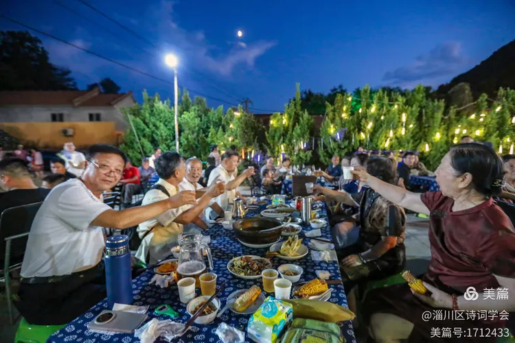 夜幕初临,在激昂的乐声和欢呼声中,消夏啤酒节拉开大幕,东庄村书记韩志浩率先登台讲话,他主要讲了东庄村的民宿特色,以及发展前景,他的话语里满是对乡亲们的热忱,更道出了对这场盛会圆满成功的真切祝愿,随后精彩纷呈的节目接连登场。几首歌曲之后,淄川区诗词学会诗友们在赵老师的带领下共同吟唱了《蒹葭》《定风波》《出塞》,诗词的独特韵味和魅力,把气氛推向一个小高潮,更为这场盛会增添了几分雅致。