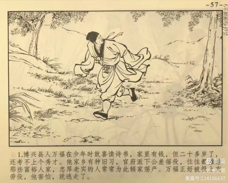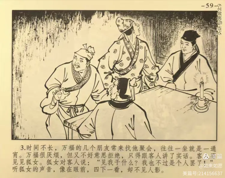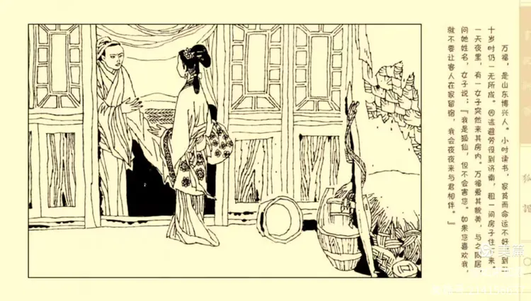 万福躲难遇狐仙,机智聪明幽默谈。