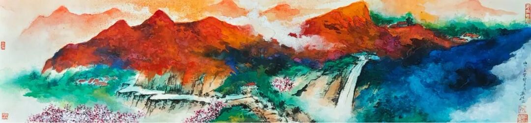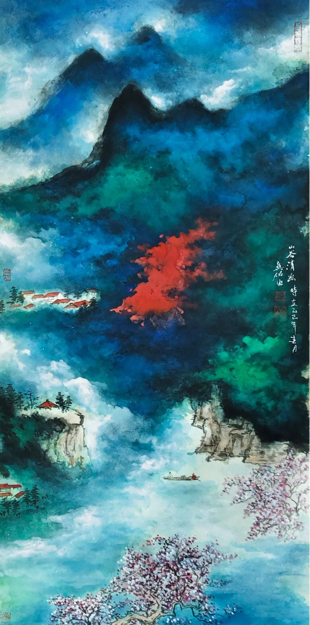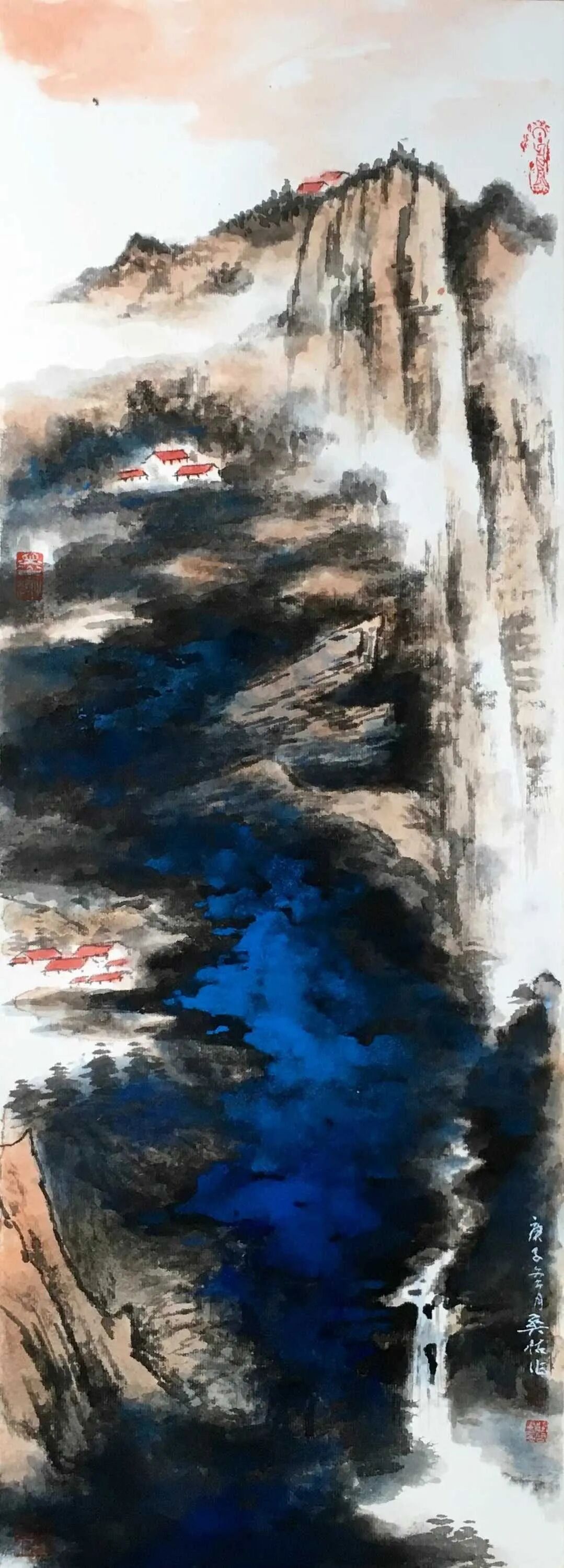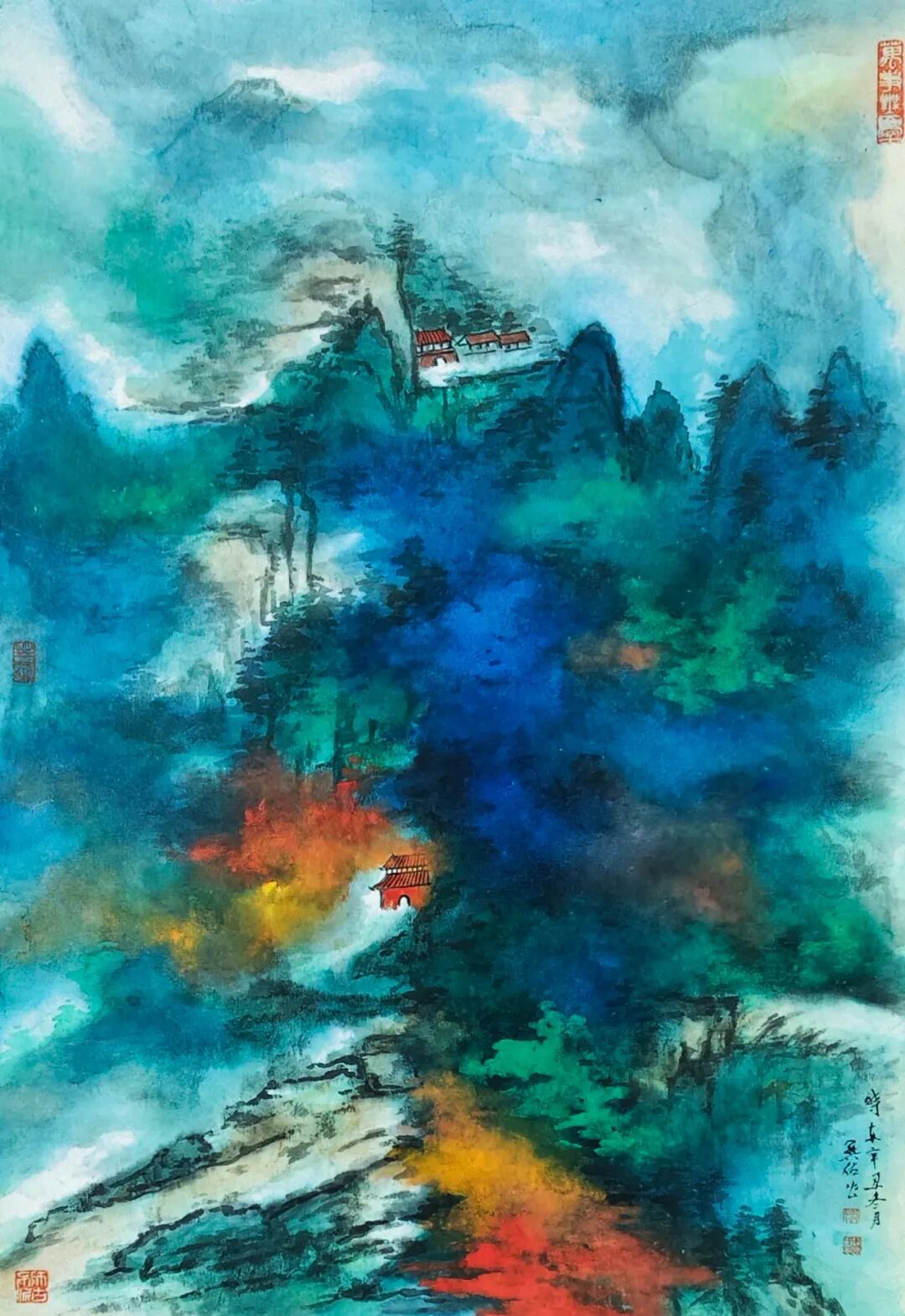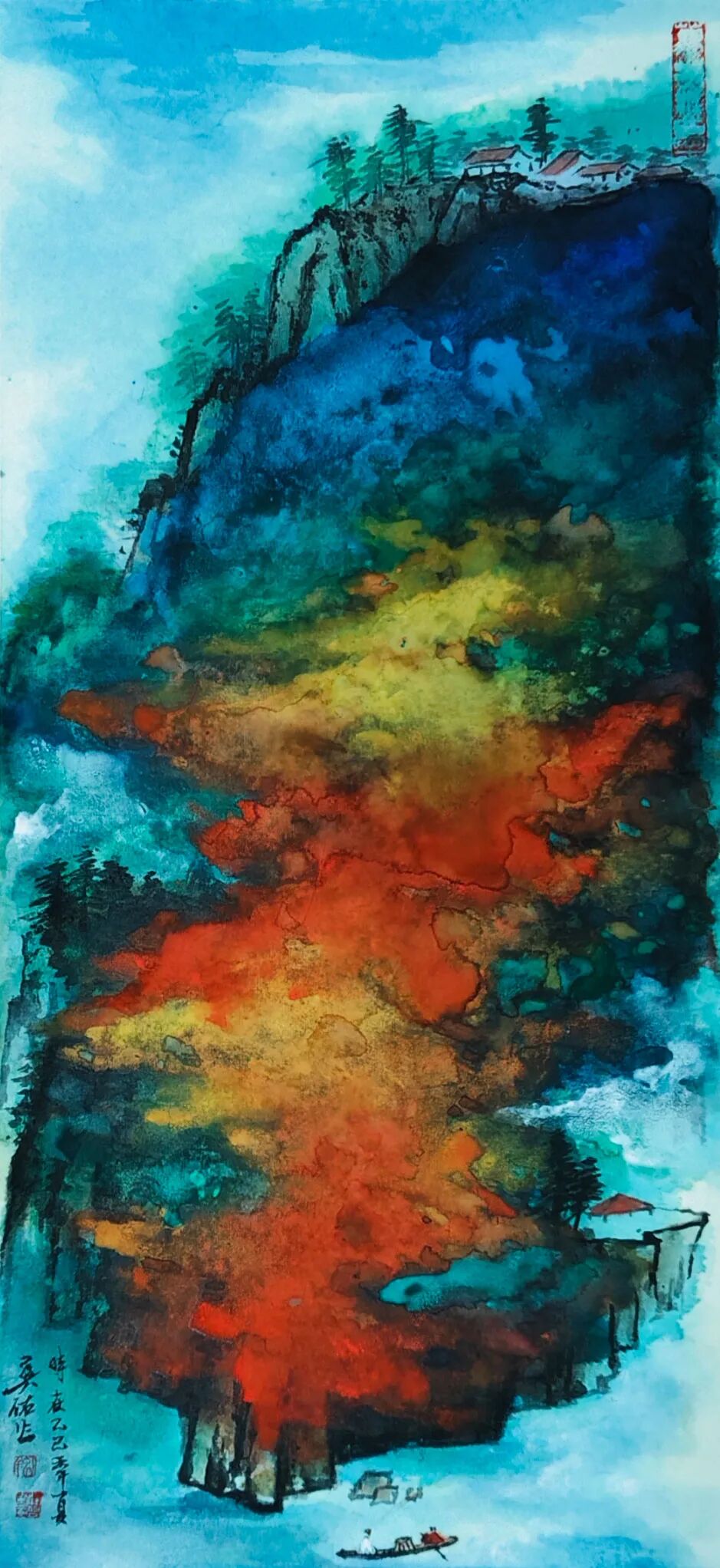 近年来,先生顺延着山水画发展方向的脉络,努力以传统技法与人文精神为基础,融合现代抽象感,精心揣摩着传统绘画“水墨”与西方绘画“色彩”的真谛。他的新作独标新韵,时而粗犷豪放、枯槁苍茫,时而彩墨淋漓、缤纷有致。既有不失传统的笔墨,又有赏心悦目的色韵,且层次丰富、浓淡相宜、华而不浮、厚而不腻,令人耳目一新,为之震撼。