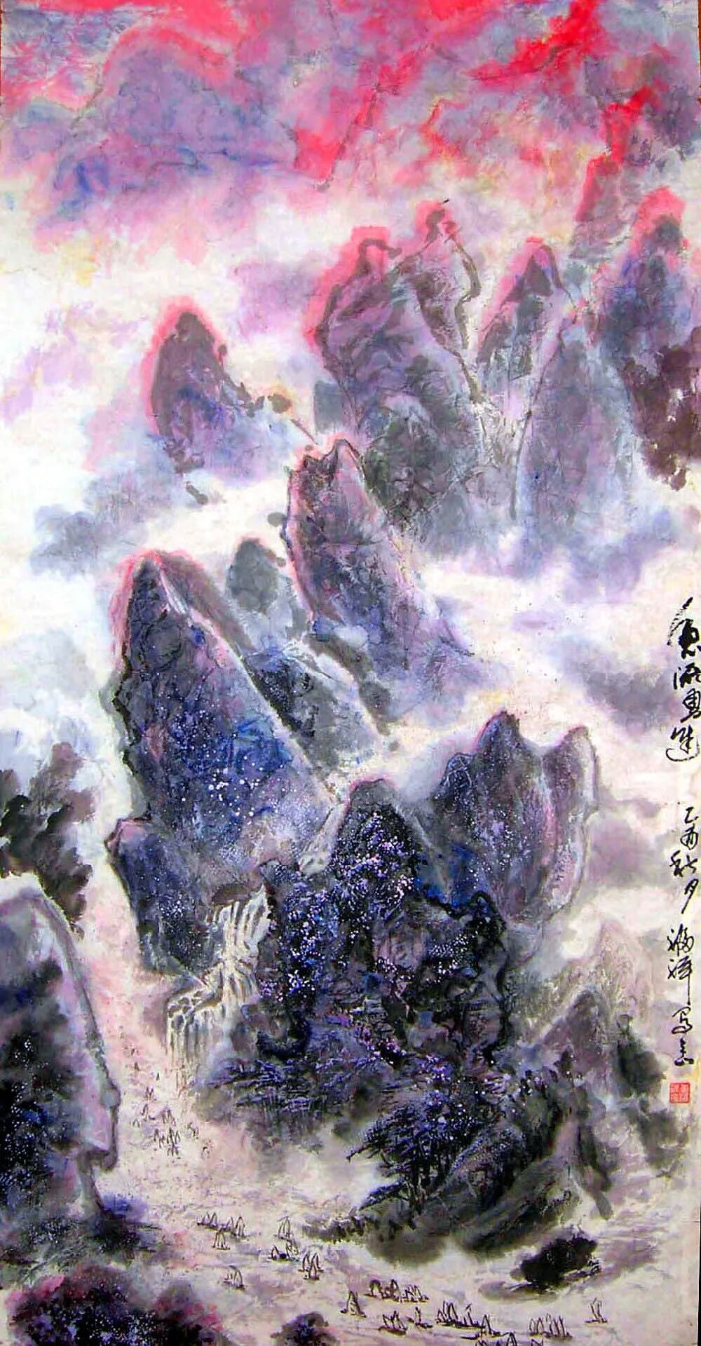 观李福祥先生的山水作品,可见他追求的是一种心源外化的情景山水,当然,笔下所绘山水众幅,也绝不是千篇一律的表现,而是都具有着不同水墨风格的外貌,是谓各具其境。诸如浑姿浓厚的奇雄之势,氤氲淋漓的险峻之态,都是能在笔墨的虚实浓淡中得以彰显。此正如古人所言画论:“作画但须顾气势轮廓,不必求好景,亦不必拘旧稿。若于开合起伏得法,轮廓气势已合,则脉络顿挫转折处,天然妙景自出”。这是李福祥先生的得悟真诠,也是他从艺以来始终恪守的论道之证。