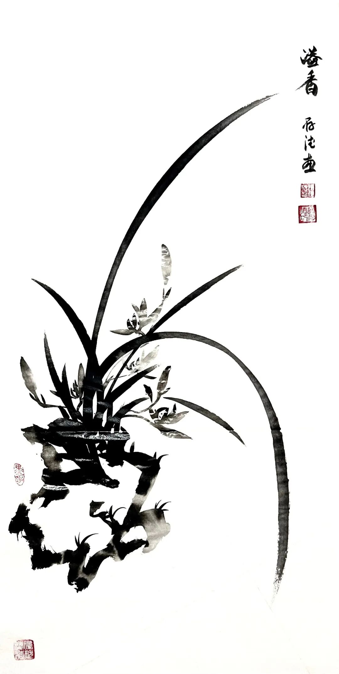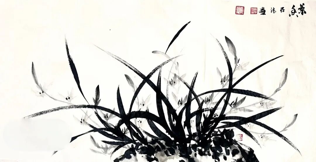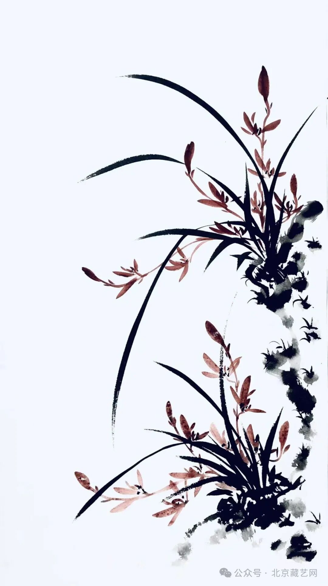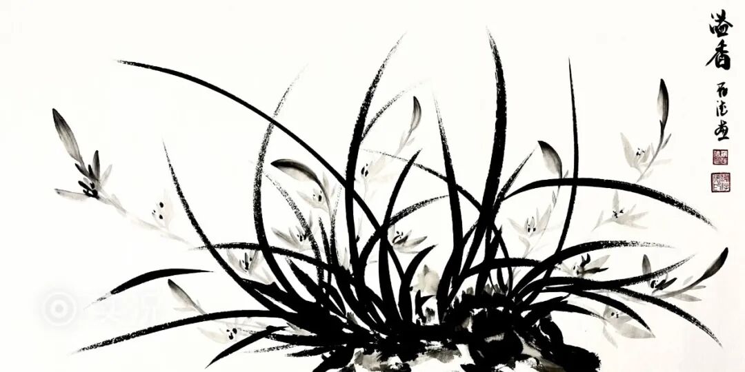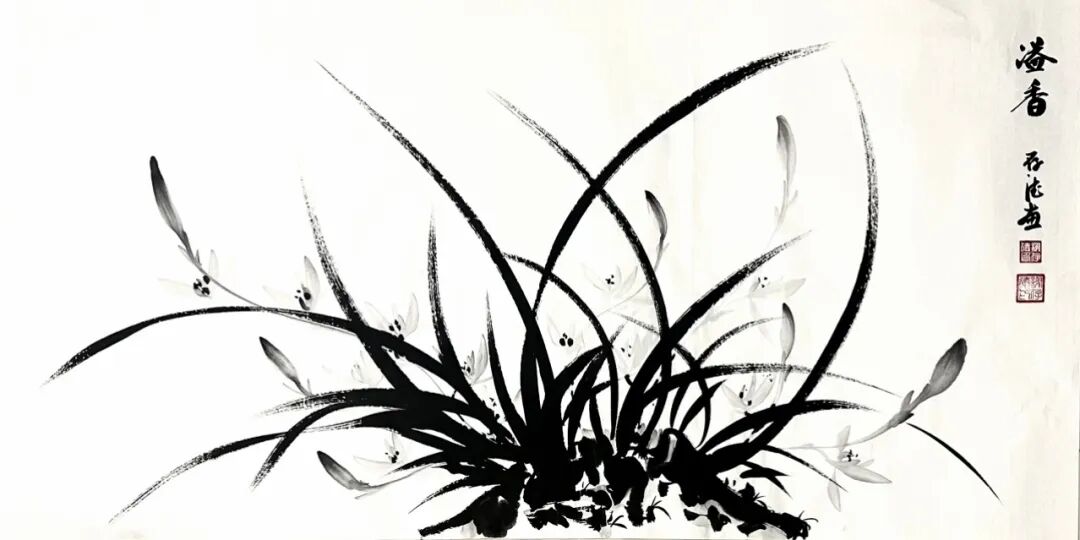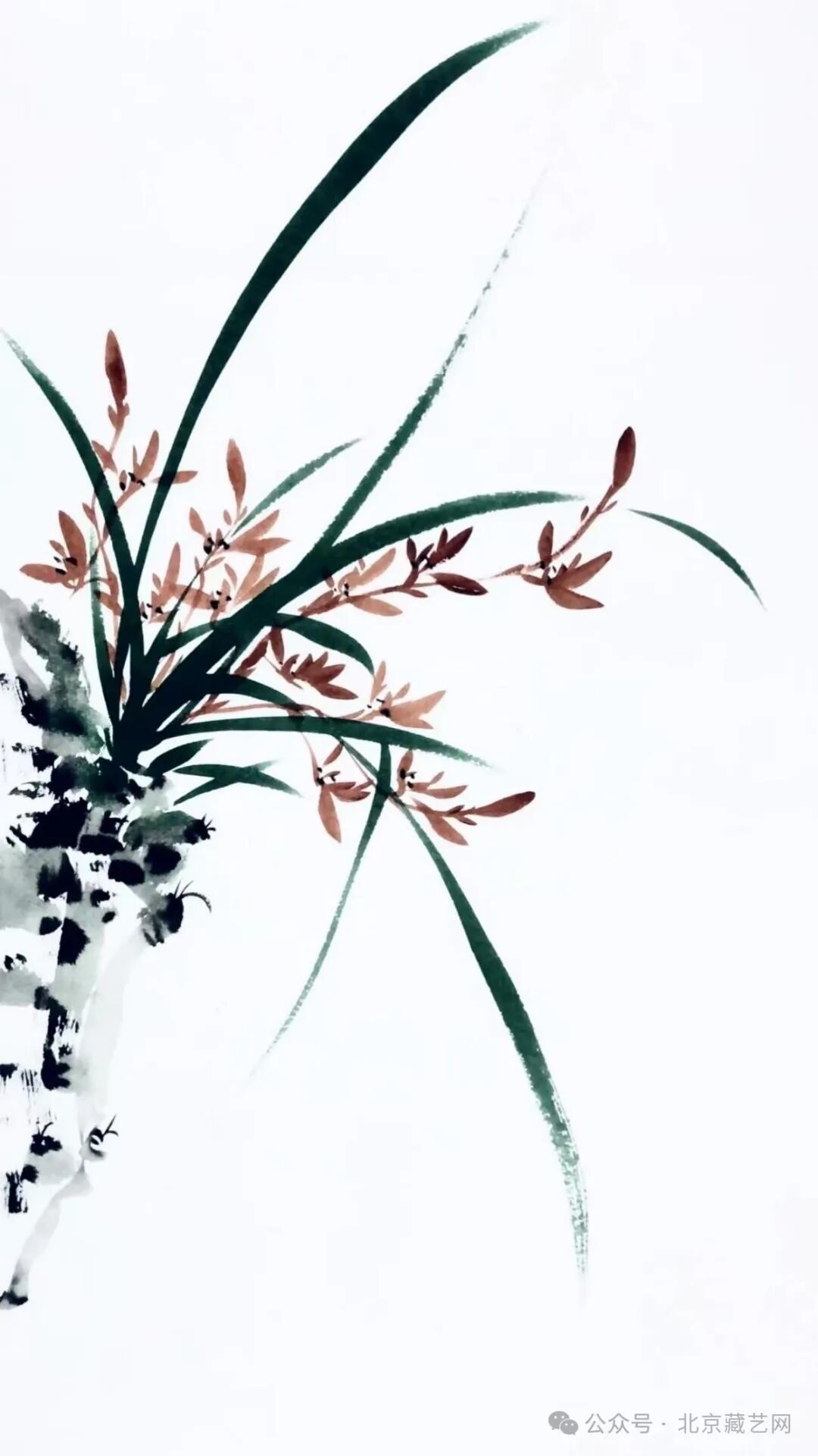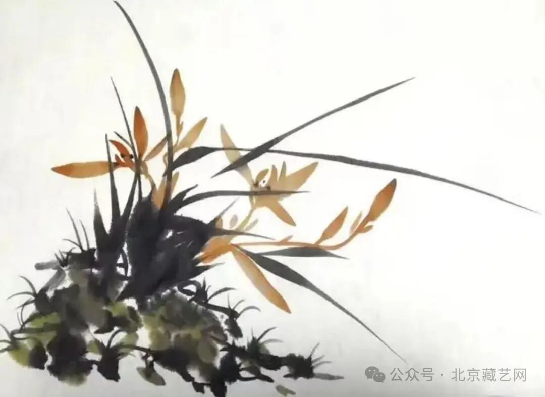 看谢存德先生的兰花画作无疑是一种美学享受,提笔落墨遂心应手,往往几笔之内就能将一幅兰花作品绘得形神毕现,叶片亭亭玉立,垂帘于左右,中间墨染花蕊,更觉意趣盎然!而对于平常画家来说,一幅写意兰花的创作难度主要还是在于构图布局上,往往笔多而意乱,难成佳韵。而谢存德先生之所以能将兰花绘作的栩栩如生,其原因也就是在于他深知兰花的自然格调,或宜隐藏,或宜显露,缘枝坠叶,细分浓淡,而绝非是一味填塞的匠俗手段!