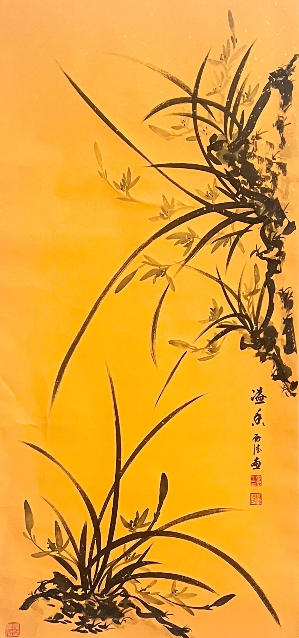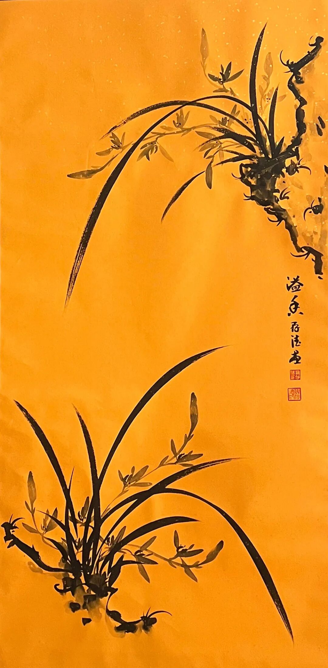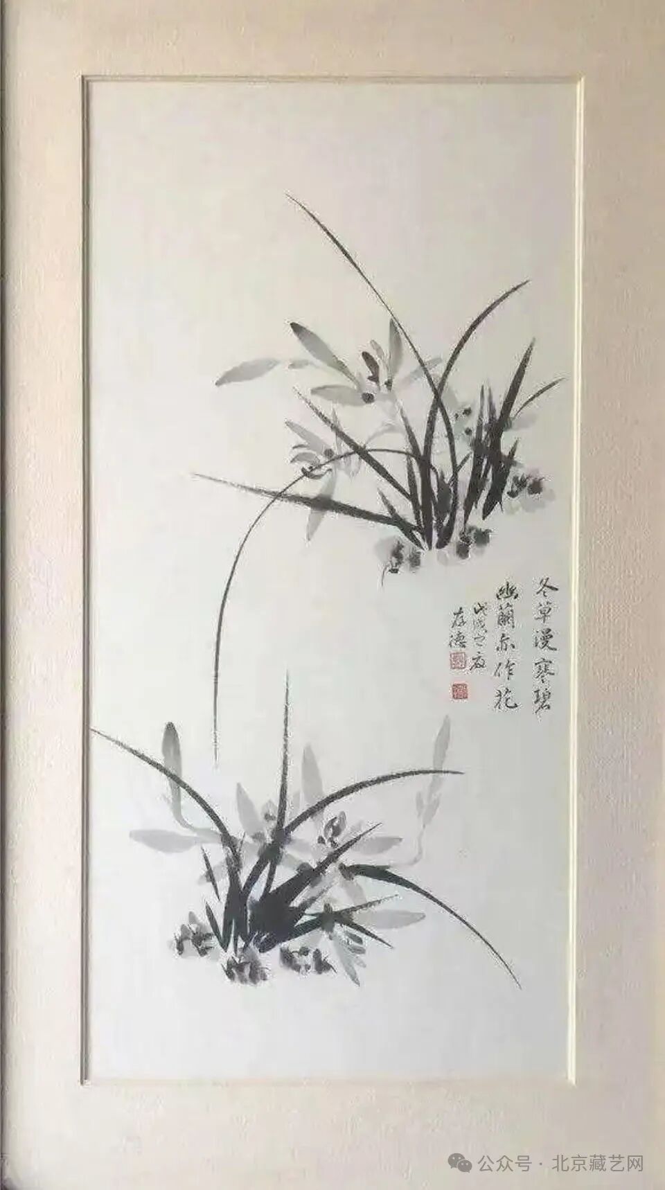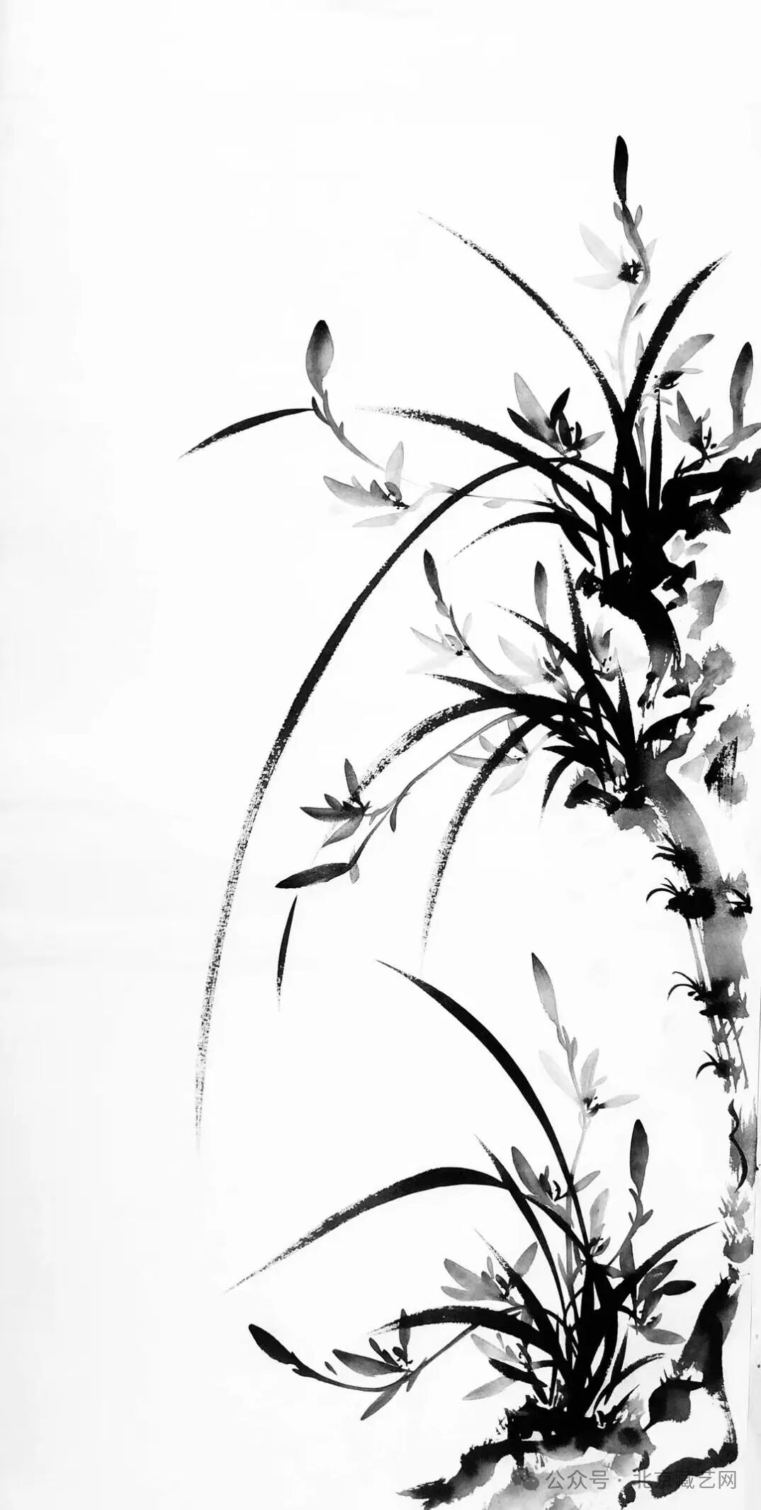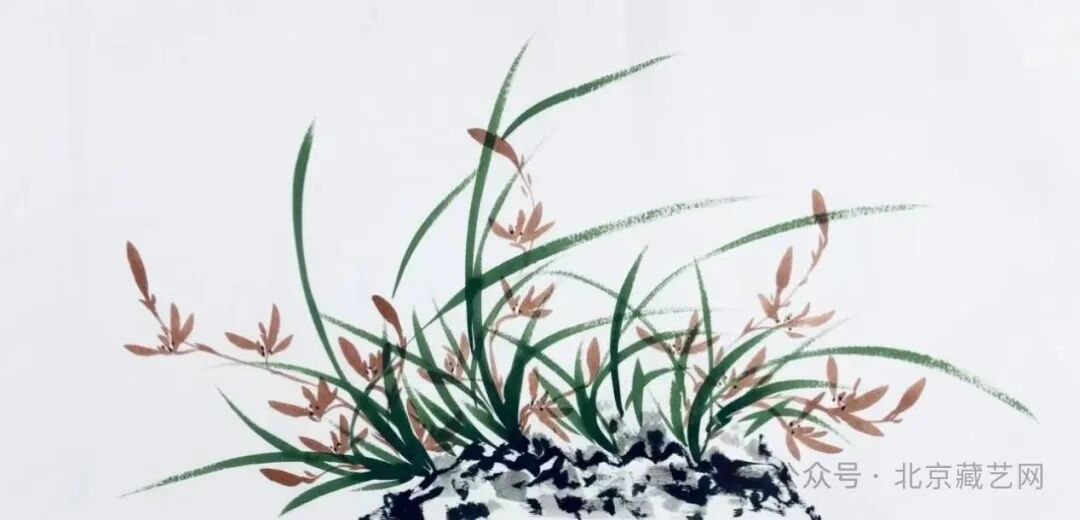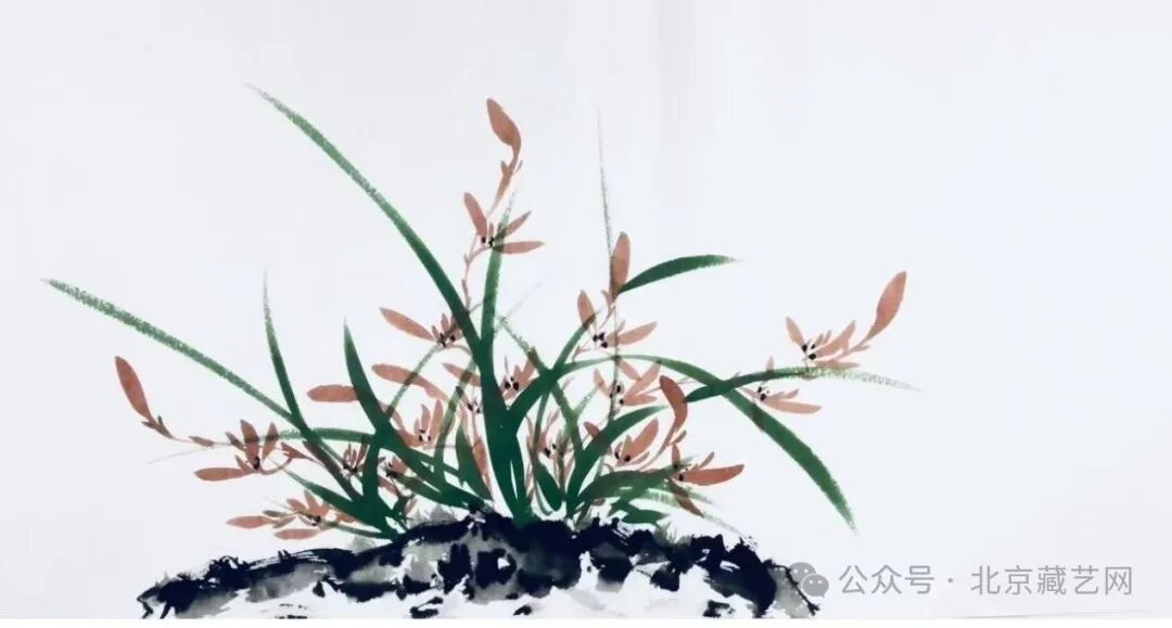 看谢存德先生的兰花画作无疑是一种美学享受,提笔落墨遂心应手,往往几笔之内就能将一幅兰花作品绘得形神毕现,叶片亭亭玉立,垂帘于左右,中间墨染花蕊,更觉意趣盎然!而对于平常画家来说,一幅写意兰花的创作难度主要还是在于构图布局上,往往笔多而意乱,难成佳韵。而谢存德先生之所以能将兰花绘作的栩栩如生,其原因也就是在于他深知兰花的自然格调,或宜隐藏,或宜显露,缘枝坠叶,细分浓淡,而绝非是一味填塞的匠俗手段!