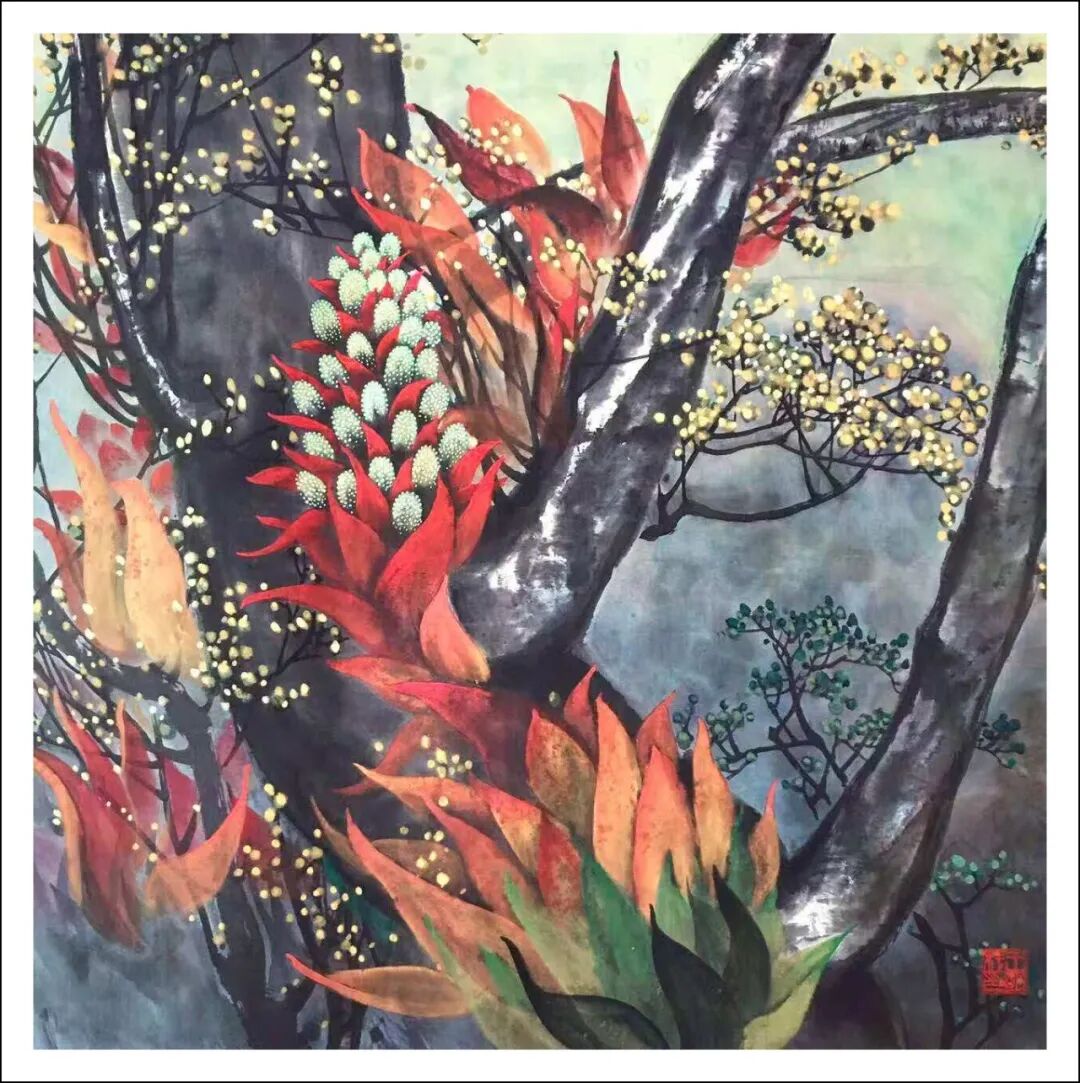 美洲木棉花 生宣彩墨 68x68㎝ 2014年 王明科