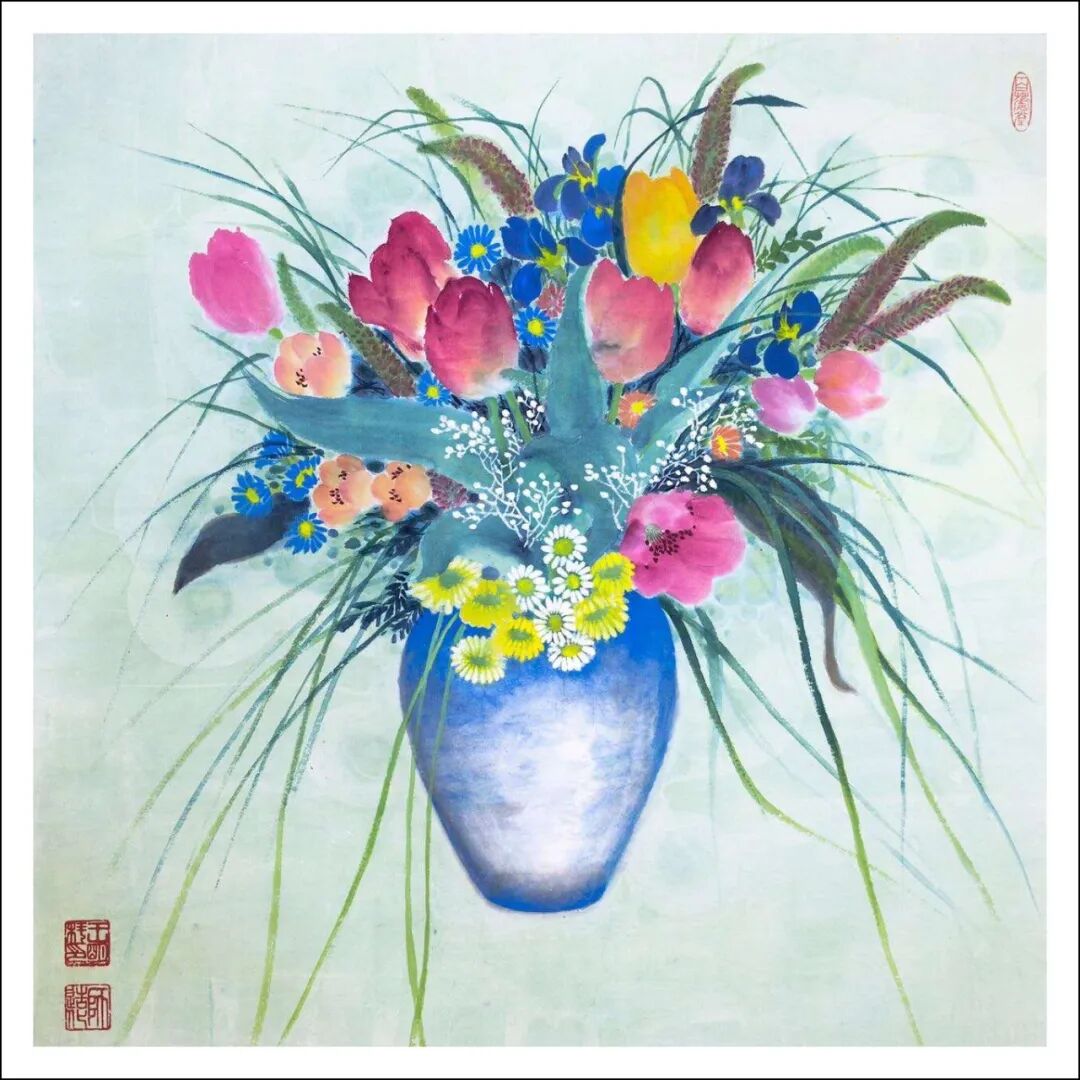 郁金香 生宣彩墨 68x68㎝ 1990年 王明科