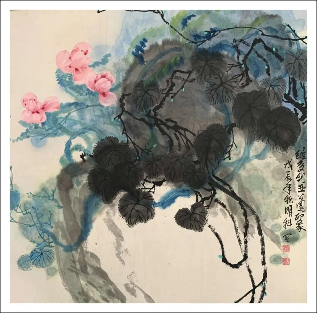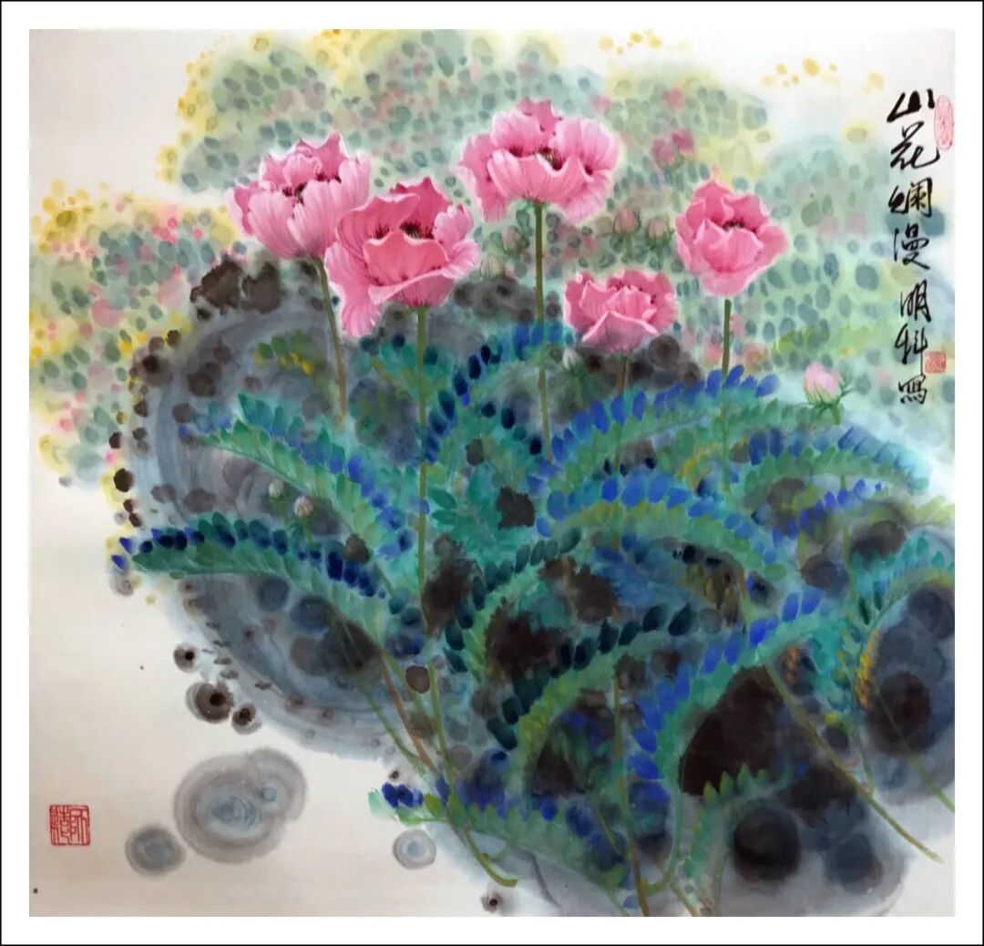 山花烂漫 生宣彩墨 68x68㎝ 1990年 王明科