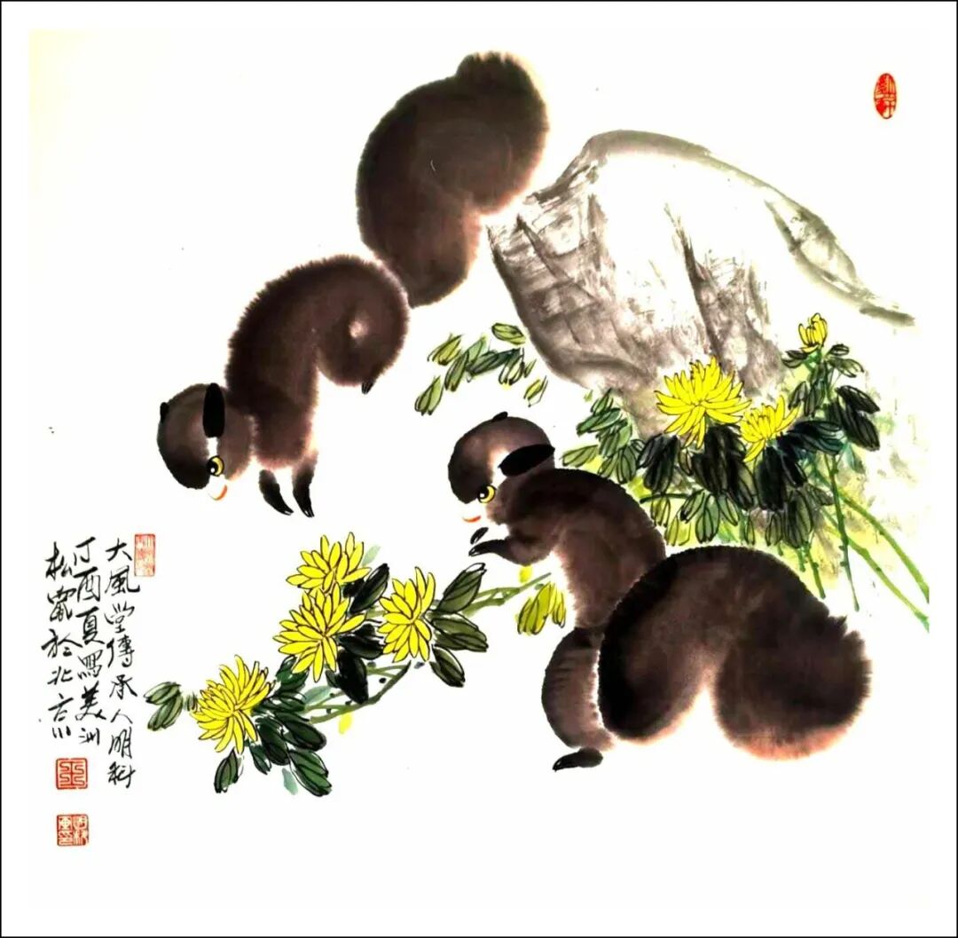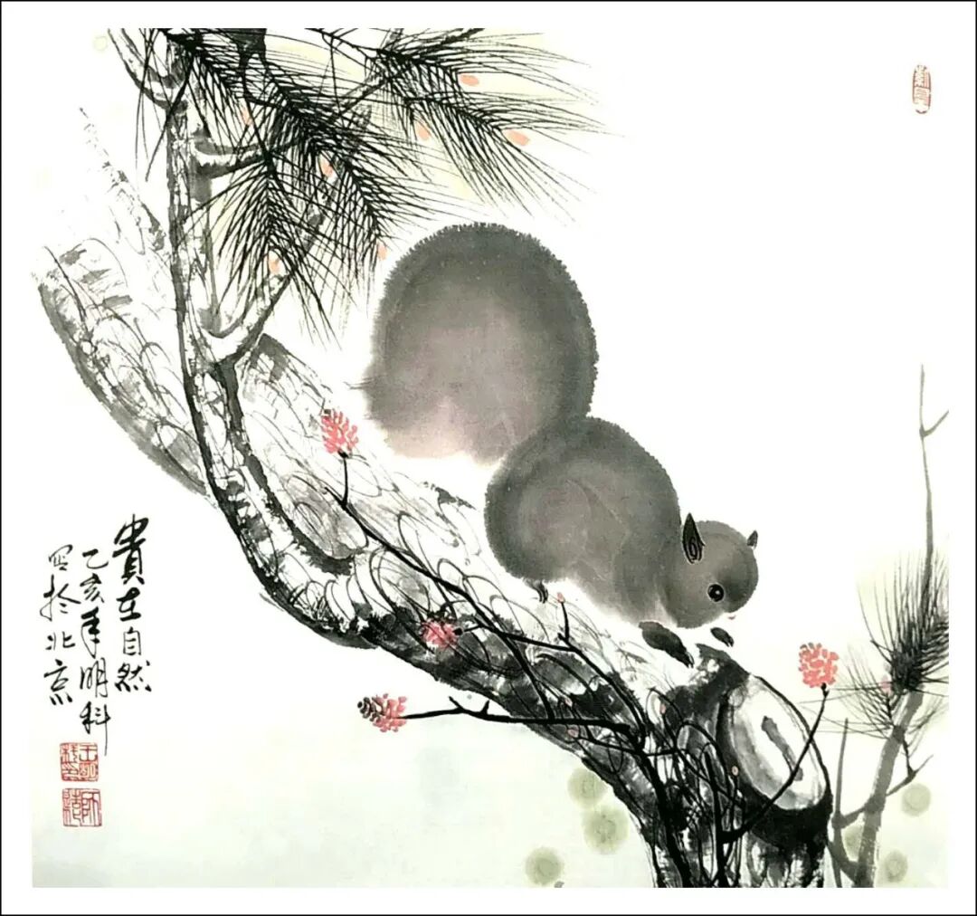 美洲松鼠 生宣彩墨 68x68㎝ 2005年 王明科