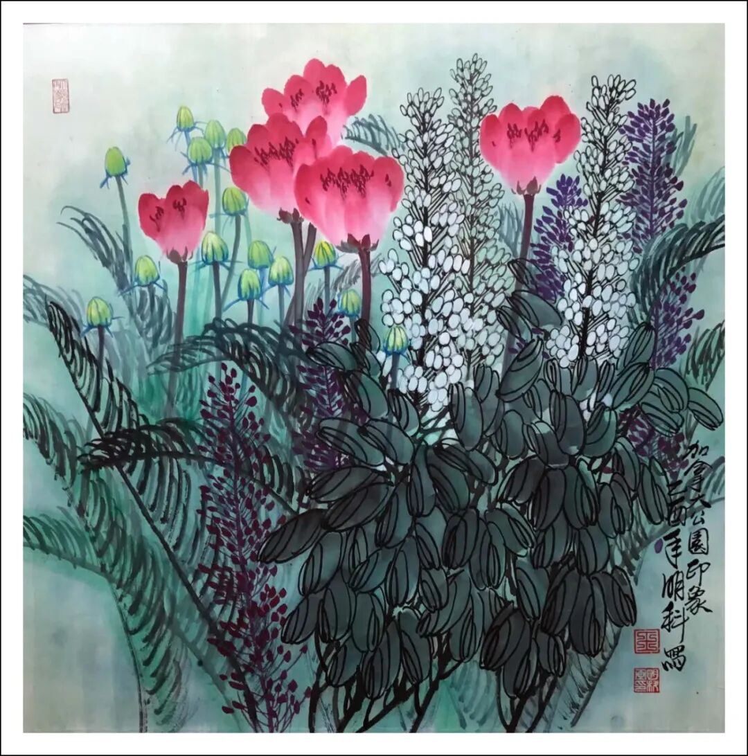 澳洲花卉 生宣彩墨 68X68㎝ 1991年 王明科