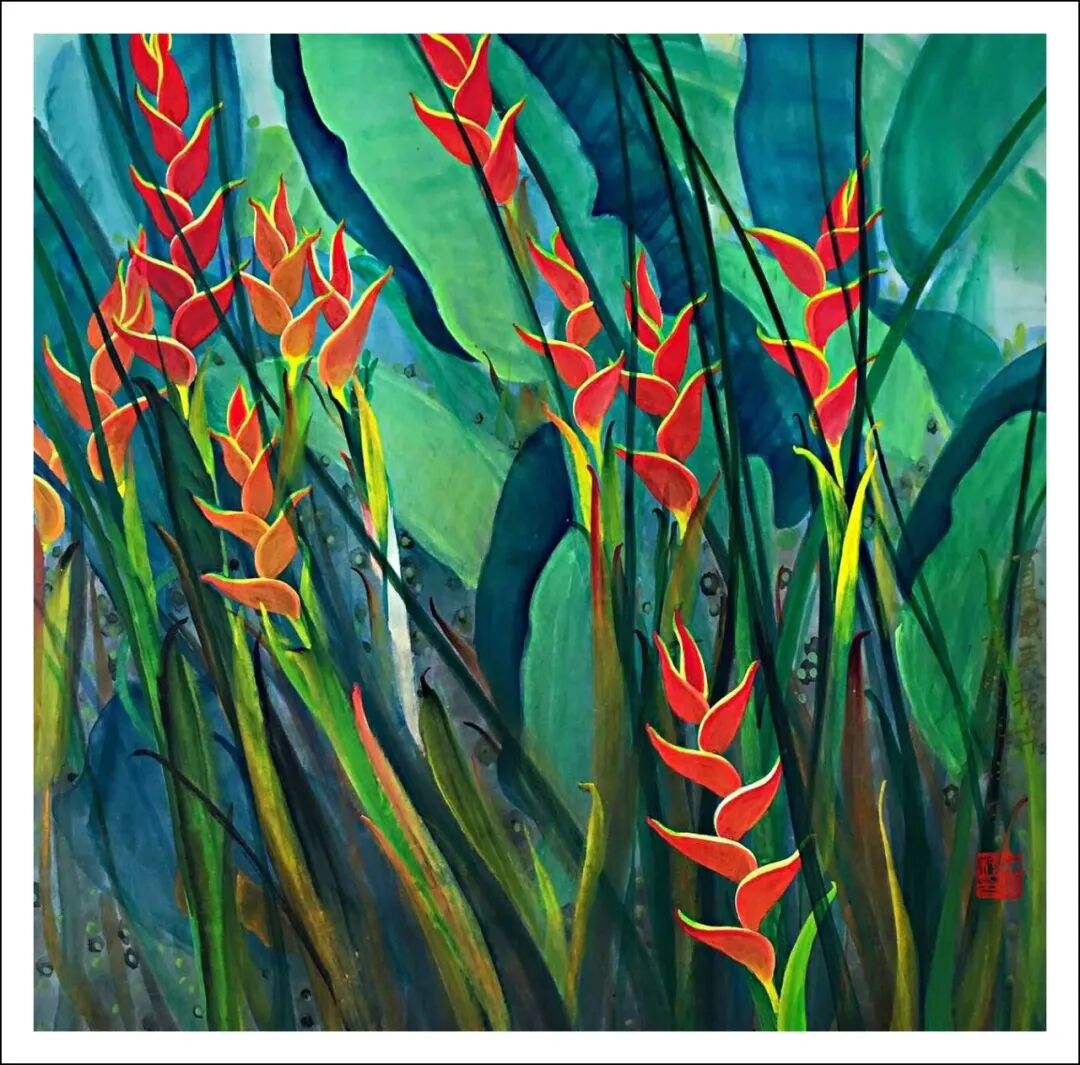 夏威夷花卉 生宣工写彩墨 68x68cm 2024年 王明科
