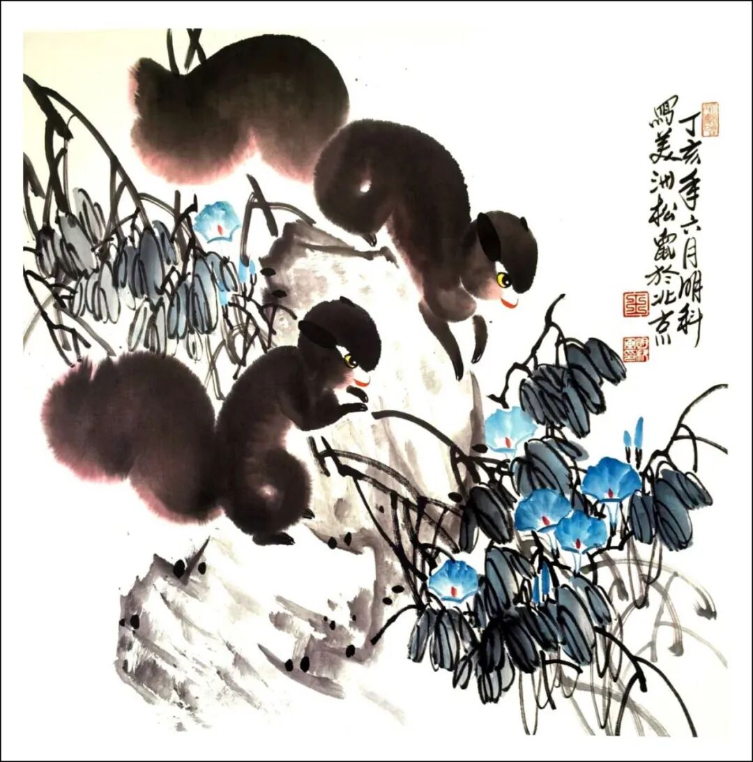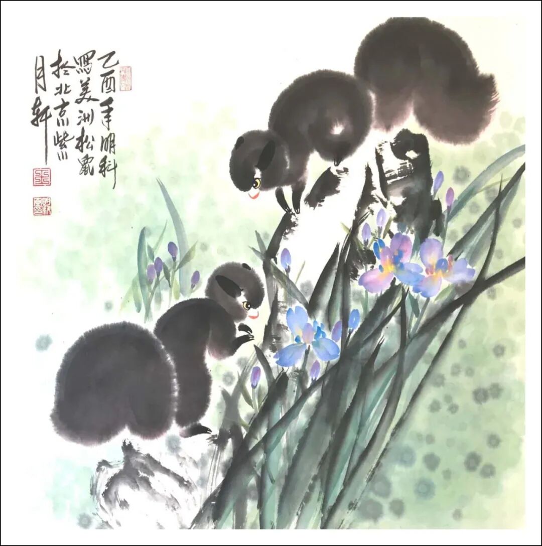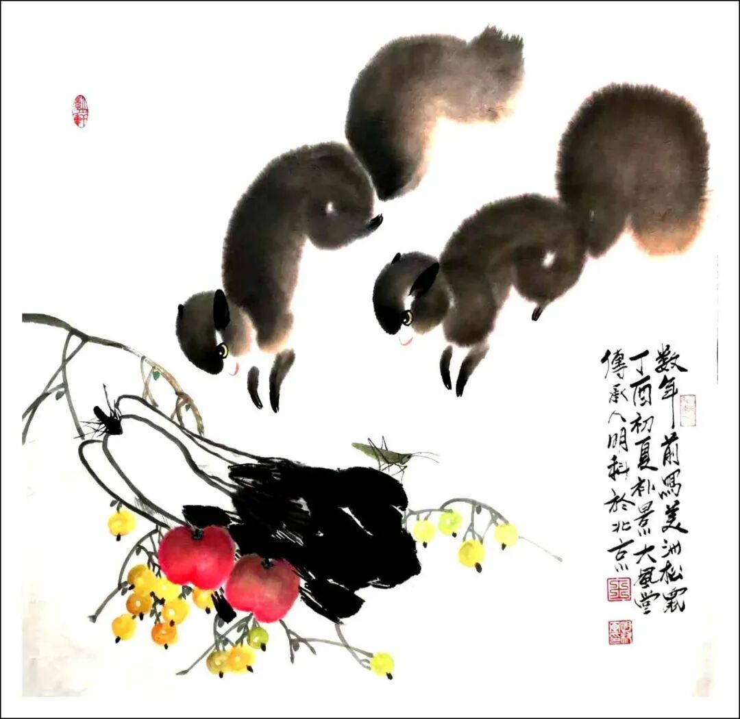 美洲松鼠 生宣彩墨 68x68㎝ 2017年 王明科