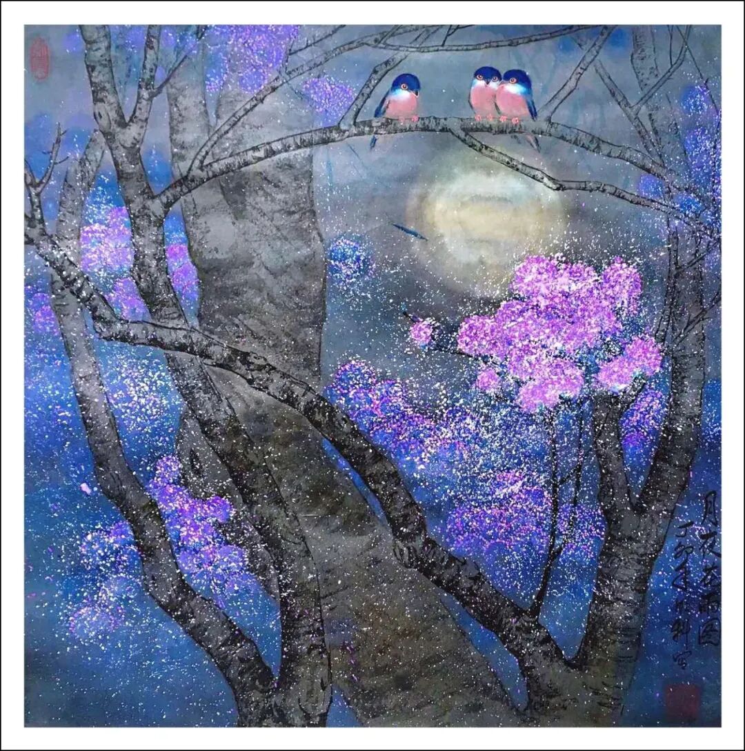 月夜花雨图 生宣工写彩墨 68X68㎝ 1987年 王明科