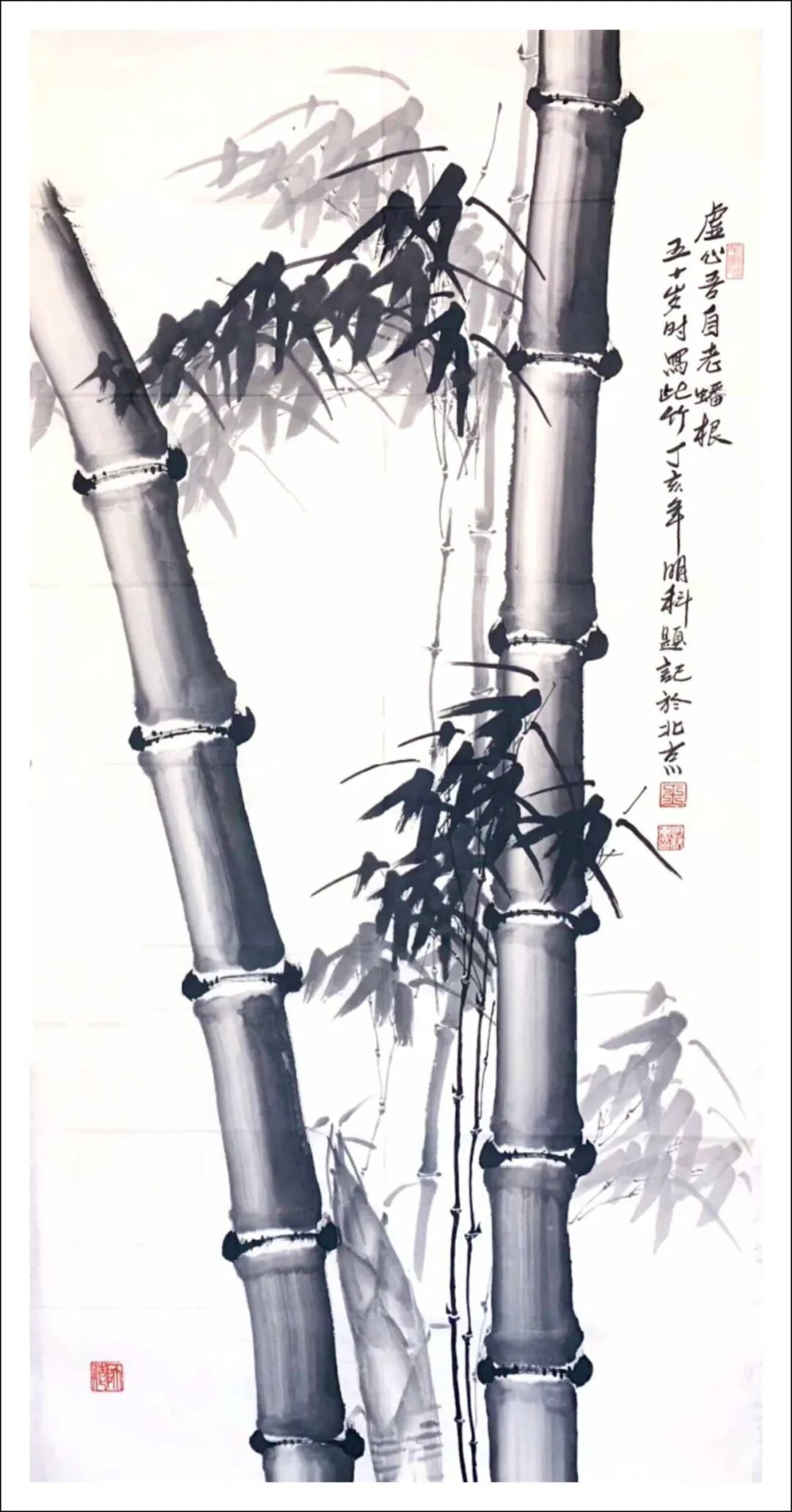 虚心吾自老蟠根 水墨 136x68㎝ 1993年 王明科