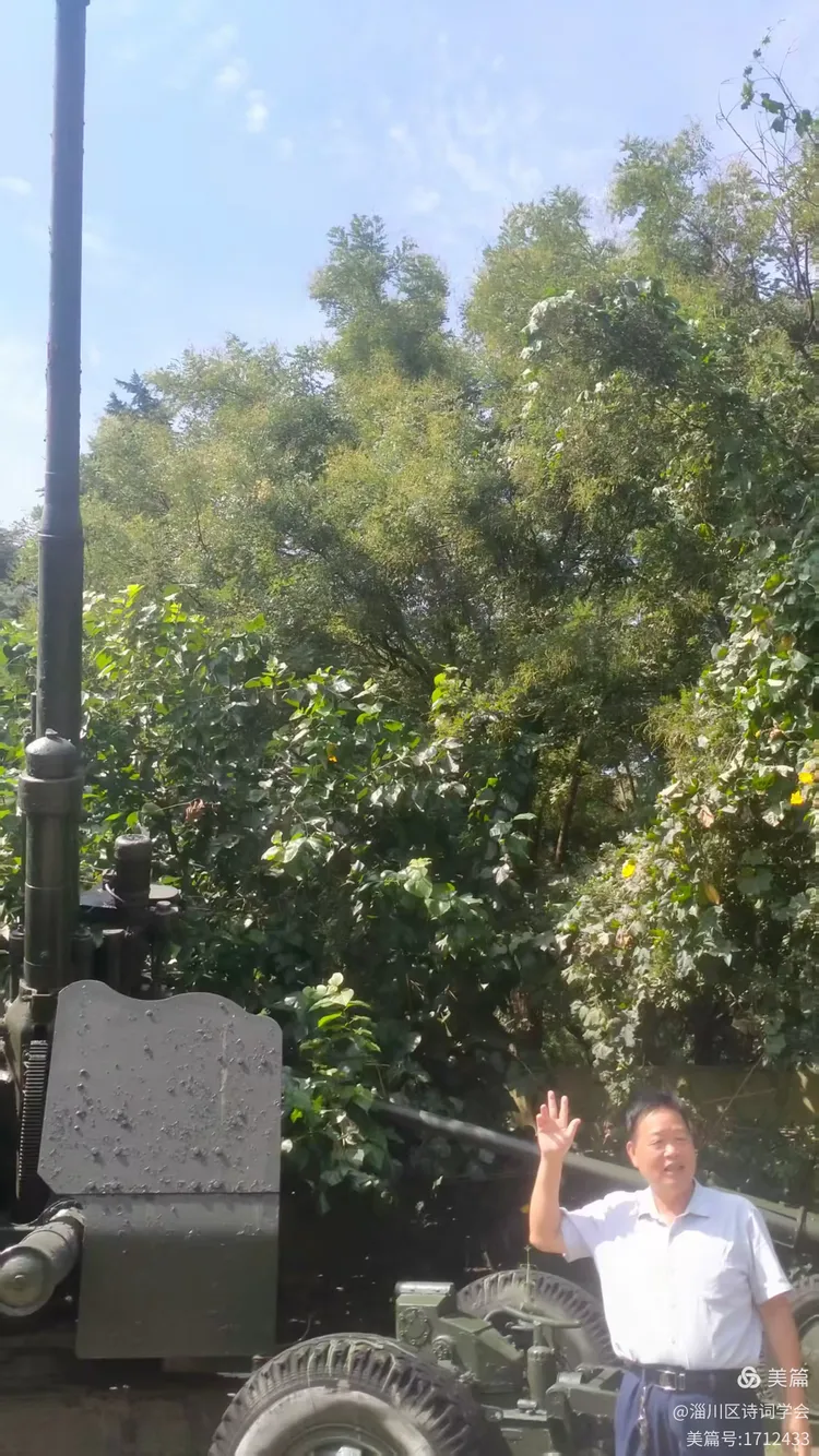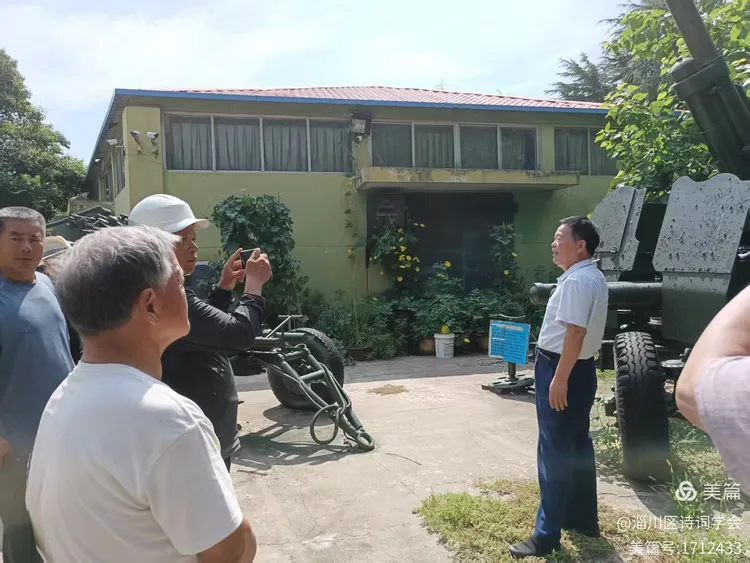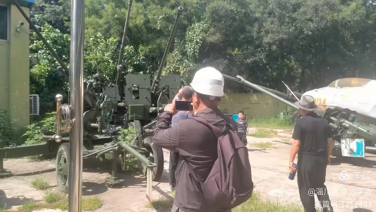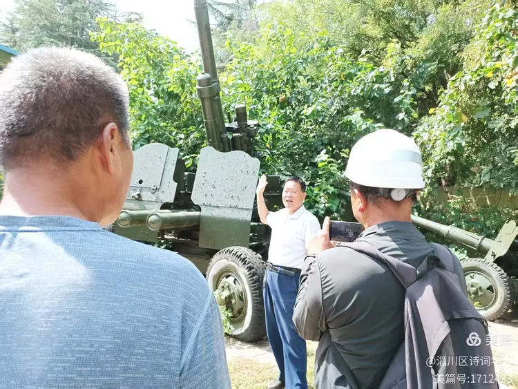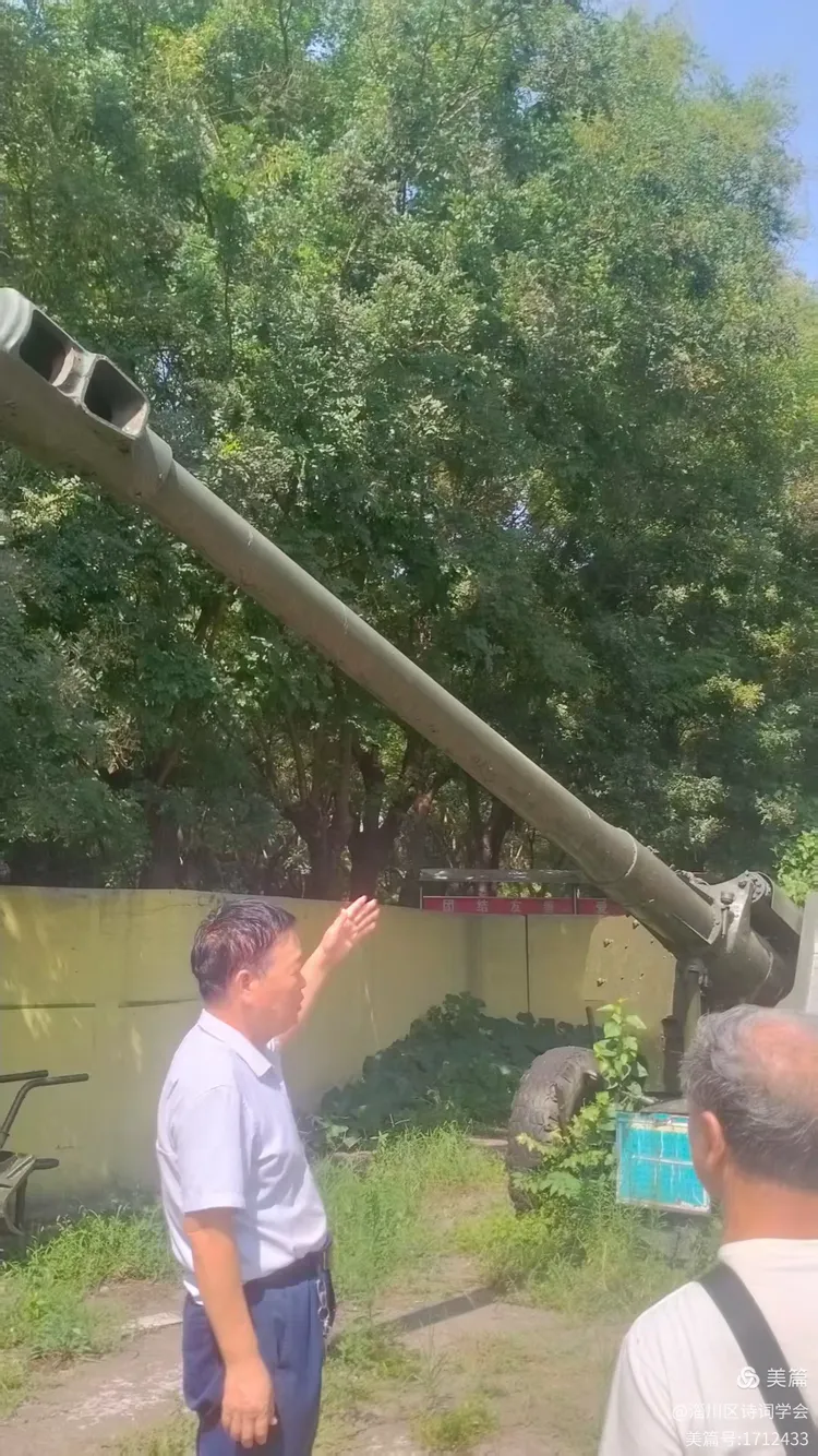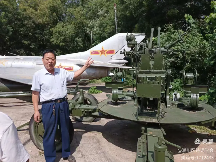 踏入基地,仿佛穿越时空长廊。战机列阵,铁翼如刀,在阳光中泛着冷冽的金属光泽,每一道纹路都镌刻着保家卫国的壮志;钢炮昂首,炮口直指苍穹,似仍在嘶吼着捍卫疆土的誓言。基地创建人张孝顺先生的讲述,为这些“钢铁战士”注入了鲜活的灵魂——从烽火岁月的浴血奋战,到和平年代的厉兵秣马,每一件展品都是一段浓缩的国防史。听着那些关于研发攻坚、戍边守土的故事,诗友们深深感受到,这不仅是武器装备的陈列,更是中国军人“威武不能屈”的精神图腾,是祖国从积弱到强盛的有力见证,那份震撼直抵心底,让人真切触摸到国防力量的厚重与伟大。