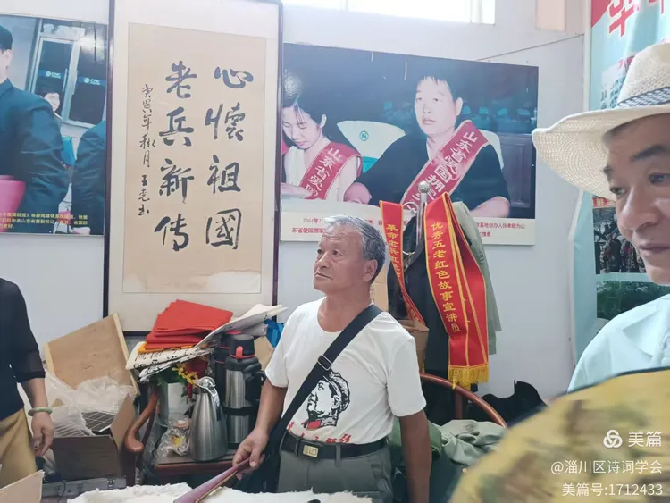 走出兵器阵列,张先生的书画展馆又铺展开另一番天地。领袖画像笔触细腻,眉眼间的和蔼与坚毅交织,让人倍感亲切;山水画卷里藏着家国情怀,花鸟图中透着赤子之心,每一笔都流淌着一位军人对党的忠诚、对国家的热爱。李世文老师赠送他的作品书籍,周丕清老师与于绵顺老师当场泼墨赠宝,笔走龙蛇间是文人风骨;张先生亦回赠真迹,墨香里凝结着同道之谊,一来一往间,情谊愈发深厚。