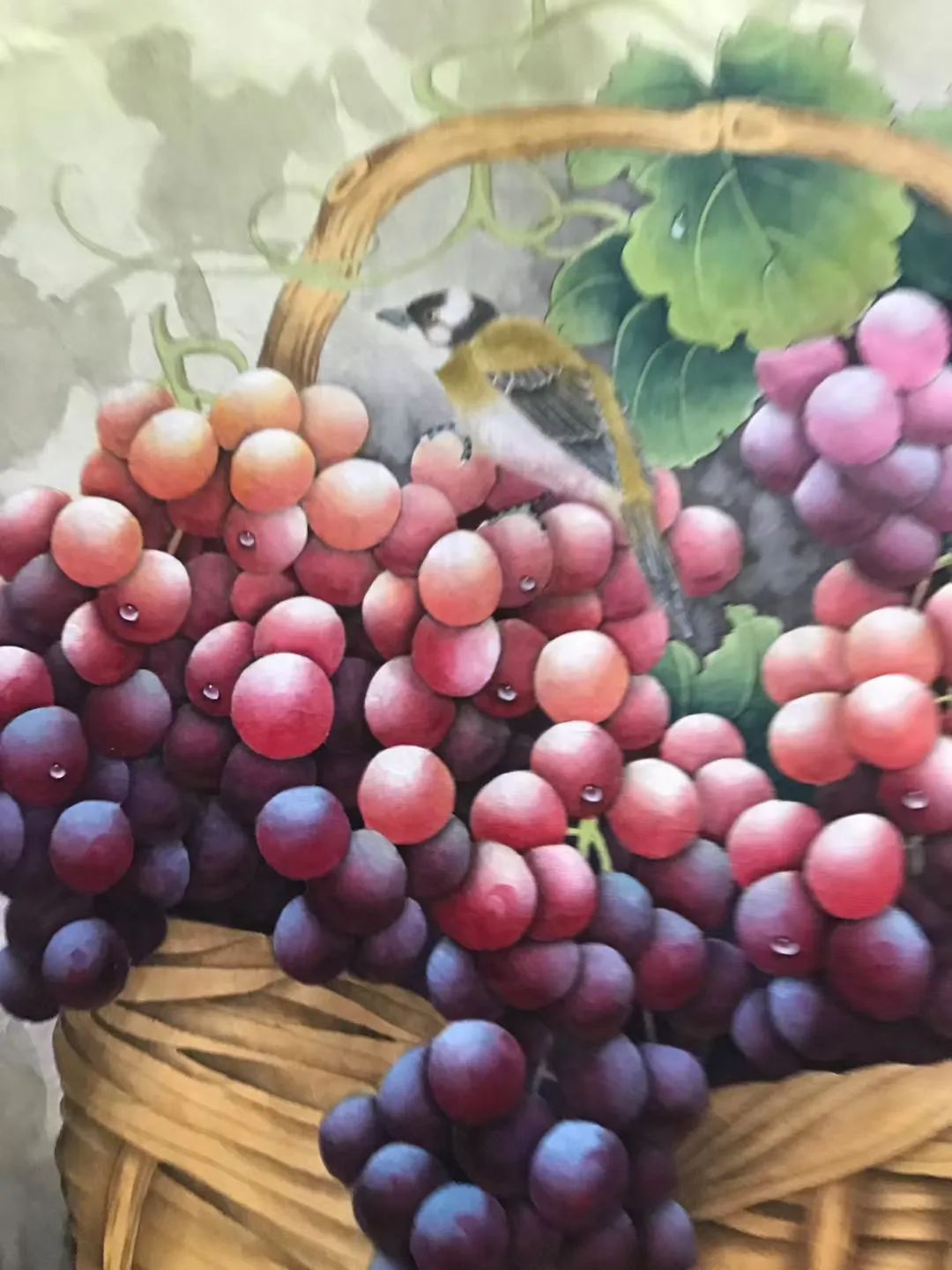 和谐与生机:画中葡萄篮旁的小鸟,为画面增添了生机与活力,营造出一种和谐美好的氛围。寓意着在和平的环境下,国家充满生机,人民生活和谐幸福,也表达了对未来美好生活的期许。