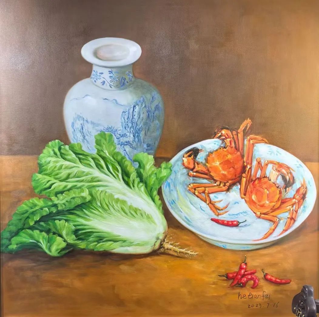 画家贺天飞通过写实的葫芦题材,将传统吉祥寓意与时代背景结合,以“福禄”“五福”寄托对国家昌盛、人民幸福的祈愿,以鲜活的生命力象征和平年代的希望与蓬勃发展。