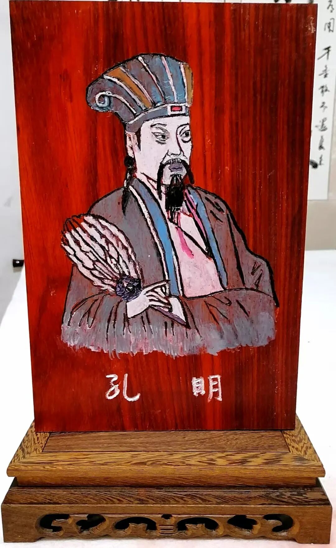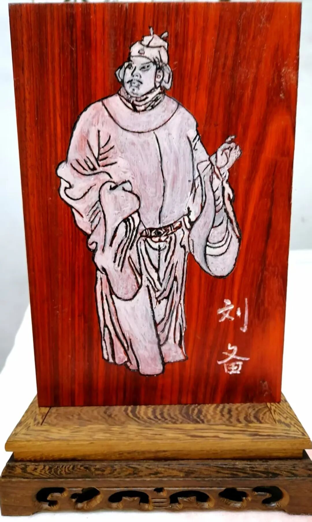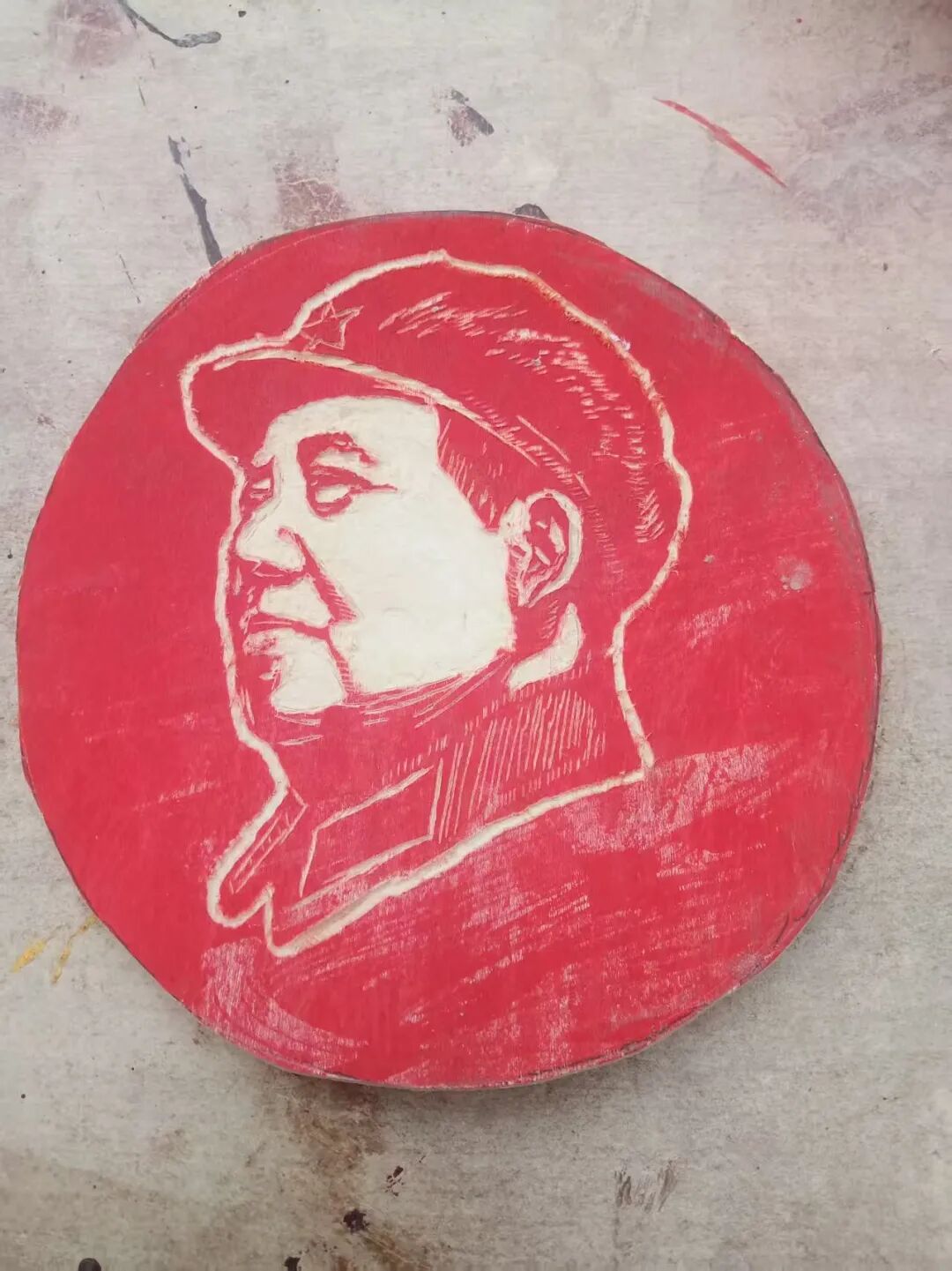 本人书法完美应合了红色题材,并将伟人形象和经典语录皆雕刻于其中,用木雕创作出“伟人头像加精典语录”用瓷盘雕刻毛主席各种头像。这种以刀代笔,诗与书相结合,书又能与时代相映照,正如艺界常言:“笔墨当随时代”。
