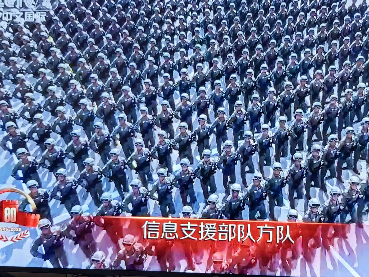 第一,这是跨越八十年的精神传承与实力跃升。八十年前,先辈们以血肉之躯筑起长城,用牺牲换来了民族独立与人民解放;八十年后,我们以钢铁洪流守护和平,用强大国防告慰先烈忠魂。当徒步方队迈着精准到毫厘的步伐走过广场,陆军的铁血、海军的沉稳、空军的锐利交织成“听党指挥、能打胜仗、作风优良”的生动图景——这步伐里,有对“落后就要挨打”的历史铭记,更有“守护盛世安宁”的未来笃定。从“小米加步枪”到“大国重器”云集,从被动防御到主动守护家国,这场军演让我清晰看到,中国国防实力已实现历史性跨越,这是前所未有的辉煌,更是对无数先烈最好的告慰。