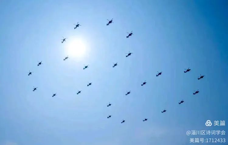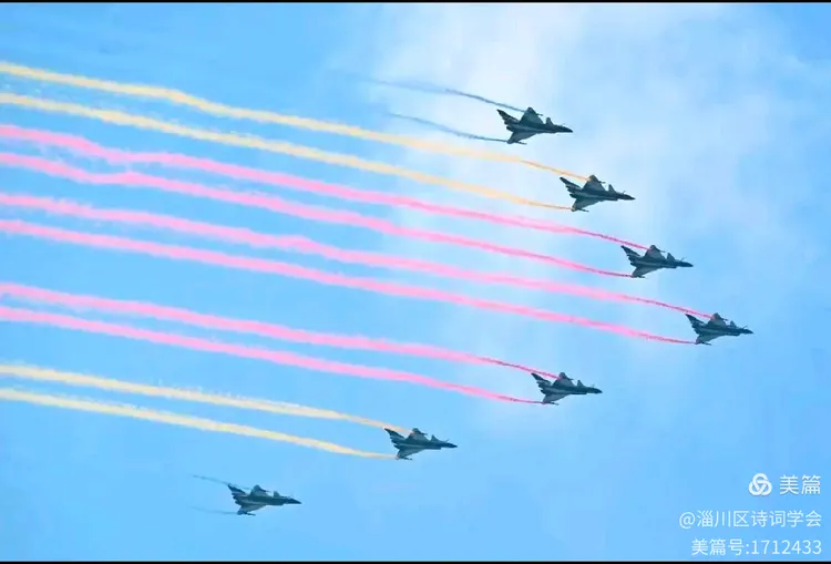 方阵威严惊宿雾,银鹰展翅掠苍穹。
